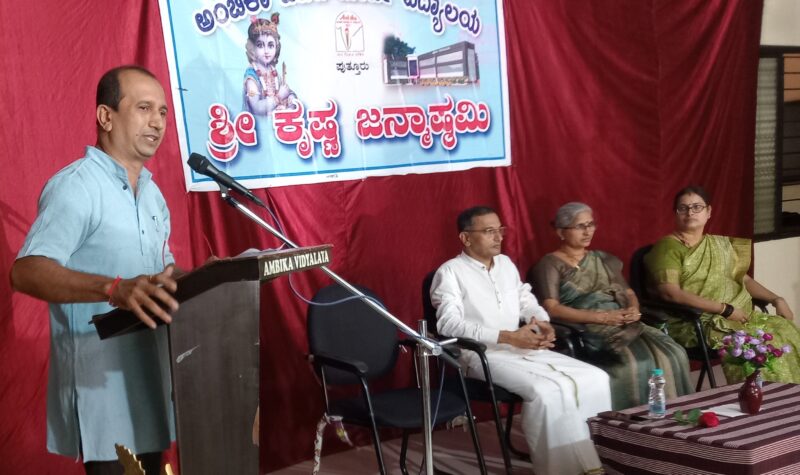 ಪುತ್ತೂರು, ಆಗಸ್ಟ್ 27, 2024: ಅಧರ್ಮವನ್ನು ಶಿಕ್ಷಿಸಿ ಧರ್ಮವನ್ನು ಸ್ಥಾಪನೆ ಮಾಡಿದ ಜಗದೋದ್ಧರಕ ಶ್ರೀ ಕೃಷ್ಣ ಬೋಧಿಸಿದ ಭಗವದ್ಗೀತೆ ಎಲ್ಲರ ಬದುಕಿಗೂ ಬೆಳಕು ಚೆಲ್ಲುತ್ತದೆ. ಇದರ ಸಾರವನ್ನು ಪ್ರತಿಯೊಬ್ಬನು ತಮ್ಮ ಜೀವನದಲ್ಲಿ ಅಳವಡಿಸಿಕೊಂಡಾಗ ಯಶಸ್ವಿ ಜೀವನವನ್ನು ನಡೆಸಬಹುದು ಎಂದು ಅಂಬಿಕಾ ಮಹಾವಿದ್ಯಾಲಯದ ಮನಃಶಾಸ್ತ್ರ ವಿಭಾಗದ ಮುಖ್ಯಸ್ಥ ಚಂದ್ರಕಾಂತ ಗೋರೆ ಹೇಳಿದರು.
