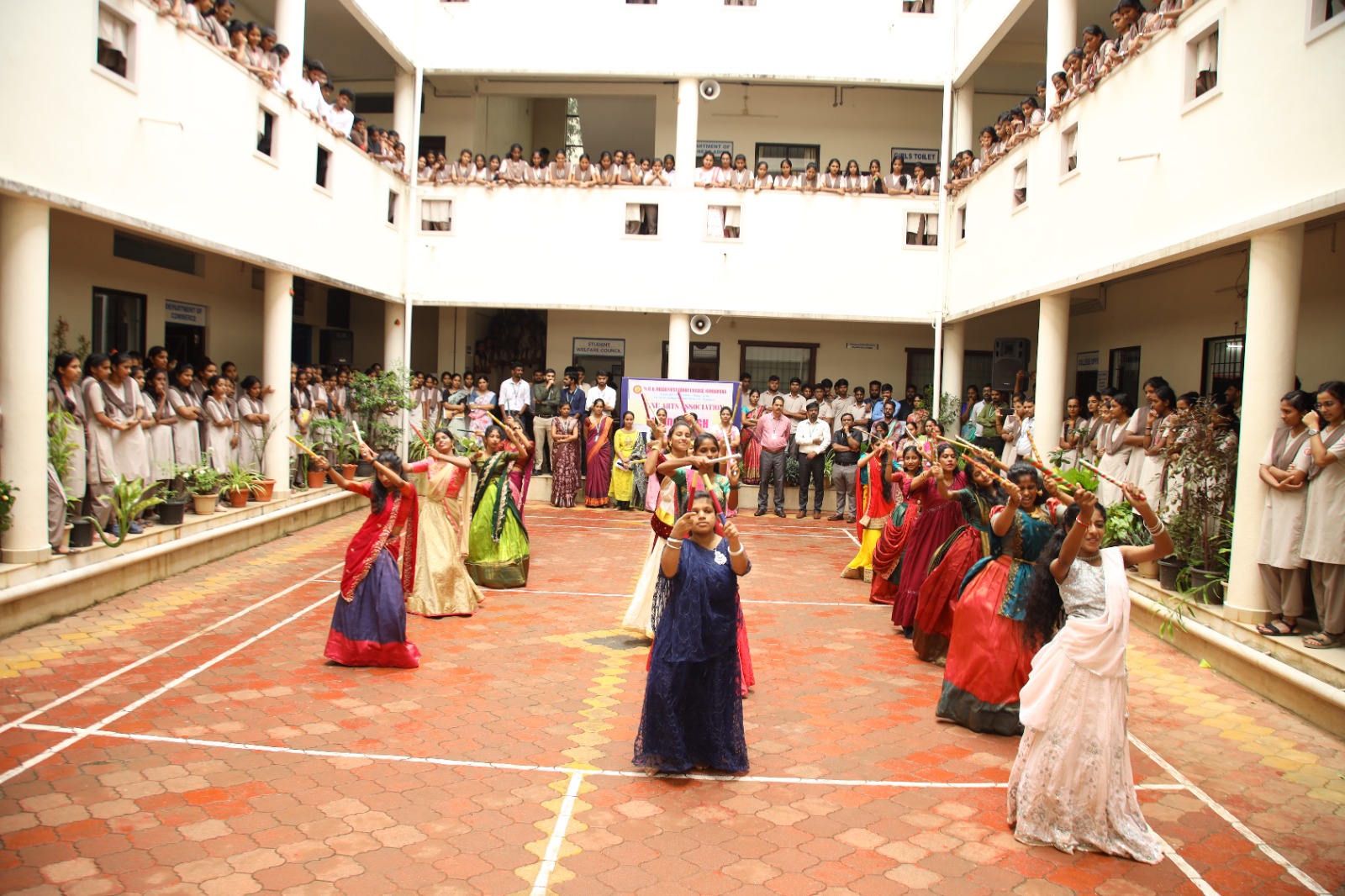 ಕುಂದಾಪುರ, ಅಕ್ಟೋಬರ್ 10, 2024: ಡಾ| ಬಿ. ಬಿ. ಹೆಗ್ಡೆ ಪ್ರಥಮ ದರ್ಜೆ ಕಾಲೇಜಿನ ಲಲಿತ ಕಲಾ ಸಂಘ ಹಾಗೂ ಹಿಂದಿ ಸಂಘದ ಜಂಟಿ ಆಶ್ರಯದಲ್ಲಿ ನವರಾತ್ರಿ ಉತ್ಸವದ ಪ್ರಯುಕ್ತ ‘ದಾಂಡಿಯ 2024’ ವಿಶೇಷವಾಗಿ ಜರುಗಿತು. ಕಾಲೇಜಿನ ಸಾಂಸ್ಕೃತಿಕ ತಂಡದಿಂದ ವಿನೂತನ ಶೈಲಿಯಲ್ಲಿ ದಾಂಡಿಯ ನೃತ್ಯ ಪ್ರಕಾರವನ್ನು ಕಾಲೇಜಿನ ಪ್ರಾಂಗಣದಲ್ಲಿ ನೆರವೇರಿಸಲಾಯಿತು.ವಿದ್ಯಾರ್ಥಿಗಳಿಗೆ ನಮ್ಮ ಕಲೆ ಸಂಸ್ಕೃತಿಯನ್ನು ಪರಿಚಯಿಸುವುದರ ಜೊತೆ ಜೊತೆಗೆ ಭವಿಷ್ಯದಲ್ಲಿ ಇಂತಹ ಪರಂಪರೆಯನ್ನು ಮುಂದುವರಿಸಿಕೊಂಡು ಹೋಗುವುದರ ಬಗ್ಗೆ ತಿಳಿಸಲಾಯಿತು.
