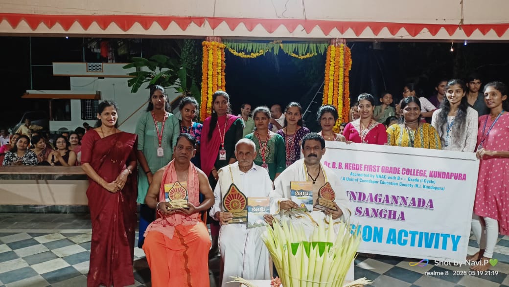 ಕುಂದಾಪುರ, 19 ಮೇ 2025: ಡಾ. ಬಿ. ಬಿ. ಹೆಗ್ಡೆ ಪ್ರಥಮ ದರ್ಜೆ ಕಾಲೇಜಿನ ಕುಂದಗನ್ನಡ ಸಂಘದ ವಿದ್ಯಾರ್ಥಿಗಳು ವಿಸ್ತರಣಾ ಚಟುವಟಿಕೆಯ ಭಾಗವಾಗಿ ಮೂಡುಗಿಳಿಯಾರಿನ ಶ್ರೀ ಸ್ವಾಮಿ ನಂದೀಕೇಶ್ವರ ದೈವಸ್ಥಾನದ ಕೋಲ ಕಾರ್ಯಕ್ರಮದಲ್ಲಿ ಪಾಲ್ಗೊಂಡು ಸಹಕರಿಸಿದರು. ಈ ಸಂದರ್ಭದಲ್ಲಿ ದೈವಸ್ಥಾನದ ಆಡಳಿತ ಮಂಡಳಿಯ ಮೋಕ್ತೇಸರರಾದ ಸುಭಾಷ್ ಚಂದ್ರ ಶೆಟ್ಟಿ, ಸೇವಾಕರ್ತರಾದ ರತ್ನಾಕರ್ ಶೆಟ್ಟಿ, ಚಂದ್ರ ಪಾಣಾ, ಕಾಲೇಜಿನ ಕುಂದಗನ್ನಡ ಸಂಘದ ಸಂಯೋಜಕಿ ರೇಷ್ಮಾ ಶೆಟ್ಟಿ, ಪ್ರವೀಣ ಪೂಜಾರಿ ಉಪಸ್ಥಿತರಿದ್ದರು.