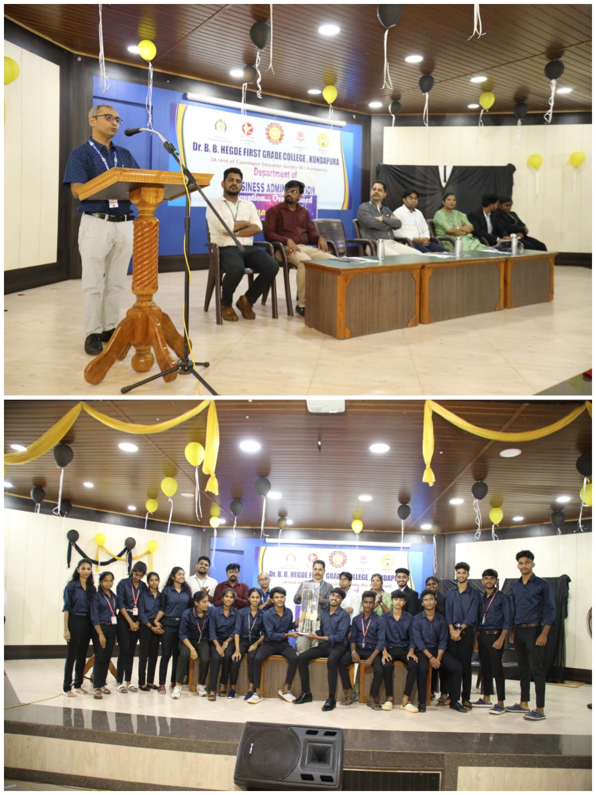 ಕಾಲೇಜಿನ ಪ್ರಾಂಶುಪಾಲರಾದ ಪ್ರೊ| ಕೆ. ಉಮೇಶ್ ಶೆಟ್ಟಿ ಕಾರ್ಯಕ್ರಮದ ಅಧ್ಯಕ್ಷತೆ ವಹಿಸಿದ್ದರು. ವಿಭಾಗದ ಪ್ರಾಧ್ಯಾಪಕರುಗಳಾದ ಅವಿತಾ ಕೊರೆಯಾ, ಹರೀಶ್ ಬಿ, ಪ್ರವೀಣ್ ಮೊಗವೀರ ಗಂಗೊಳ್ಳಿ, ಚೈತಾಲಿ ಉಪಸ್ಥಿತರಿದ್ದರು. ವ್ಯವಹಾರ ಆಡಳಿತ ವಿಭಾಗದ ಮುಖ್ಯಸ್ಥರಾದ ಶ್ರೀಮತಿ ನಂದಾ ರೈ ಸ್ವಾಗತಿಸಿದರು. ಕಾಲೇಜಿನ ಉಪ ಪ್ರಾಂಶುಪಾಲರಾದ ಡಾ| ಚೇತನ್ ಶೆಟ್ಟಿ ಕೋವಾಡಿ ಪ್ರಾಸ್ತಾವಿಕ ಮಾತುಗಳನ್ನಾಡಿದರು. ಸಂಯೋಜಕರಾದ ರಜತ್ ಬಂಗೇರ ವಿಜೇತರ ಪಟ್ಟಿ ವಾಚಿಸಿದರು. ಟೀಮ್ ಪಯೋನಿಯರ್ ಸಮಗ್ರ ಚಾಂಪಿಯನ್ ಆಗಿ ಮೂಡಿಬಂತು. ಸಕ್ಸಸ್ ಸ್ಕ್ವಾಡ್ ತಂಡ ರನ್ನರ್ ಅಪ್ ಪ್ರಶಸ್ತಿ ಪಡೆದುಕೊಂಡಿತು. ವಿದ್ಯಾರ್ಥಿ ಪ್ರತಿನಿಧಿ ಕಿರಣ್ ಅತಿಥಿಗಳನ್ನು ಸಭೆಗೆ ಪರಿಚಯಿಸಿದರು. ಶ್ರದ್ಧಾ ಆರ್. ವಂದಿಸಿದರು. ವಿದ್ಯಾರ್ಥಿನಿ ಶ್ರೀರಕ್ಷಾ ನಿರೂಪಿಸಿದರು.