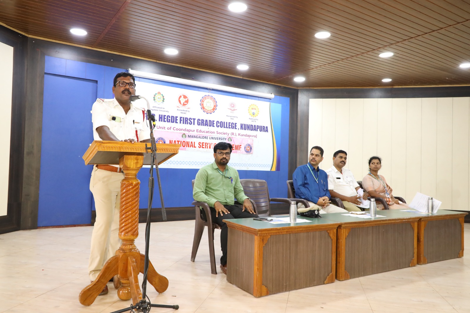 ಅವರು ಕಾಲೇಜಿನ ರಾಷ್ಟ್ರೀಯ ಸೇವಾ ಯೋಜನಾ ಘಟಕ ಆಯೋಜಿಸಿದ ಸಂಚಾರಿ ನಿಯಮಗಳ ಕುರಿತ ‘ಟ್ರಾಫಿಕ್ ಅರಿವು’ ಕಾರ್ಯಕ್ರಮ ಉದ್ದೇಶಿಸಿ ಮಾತನಾಡಿದರು.