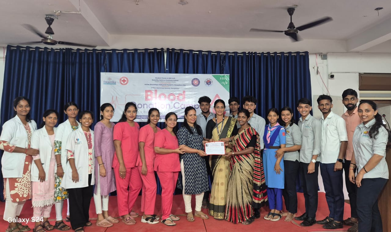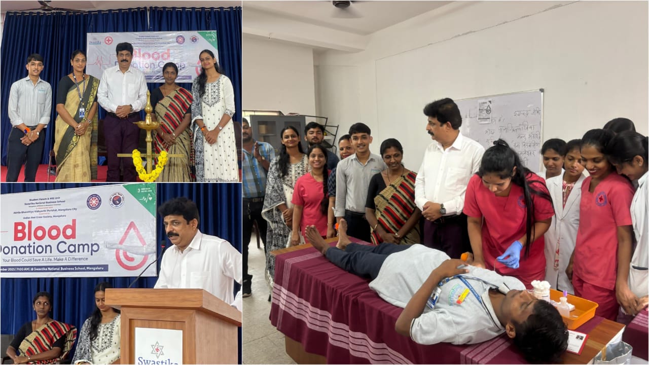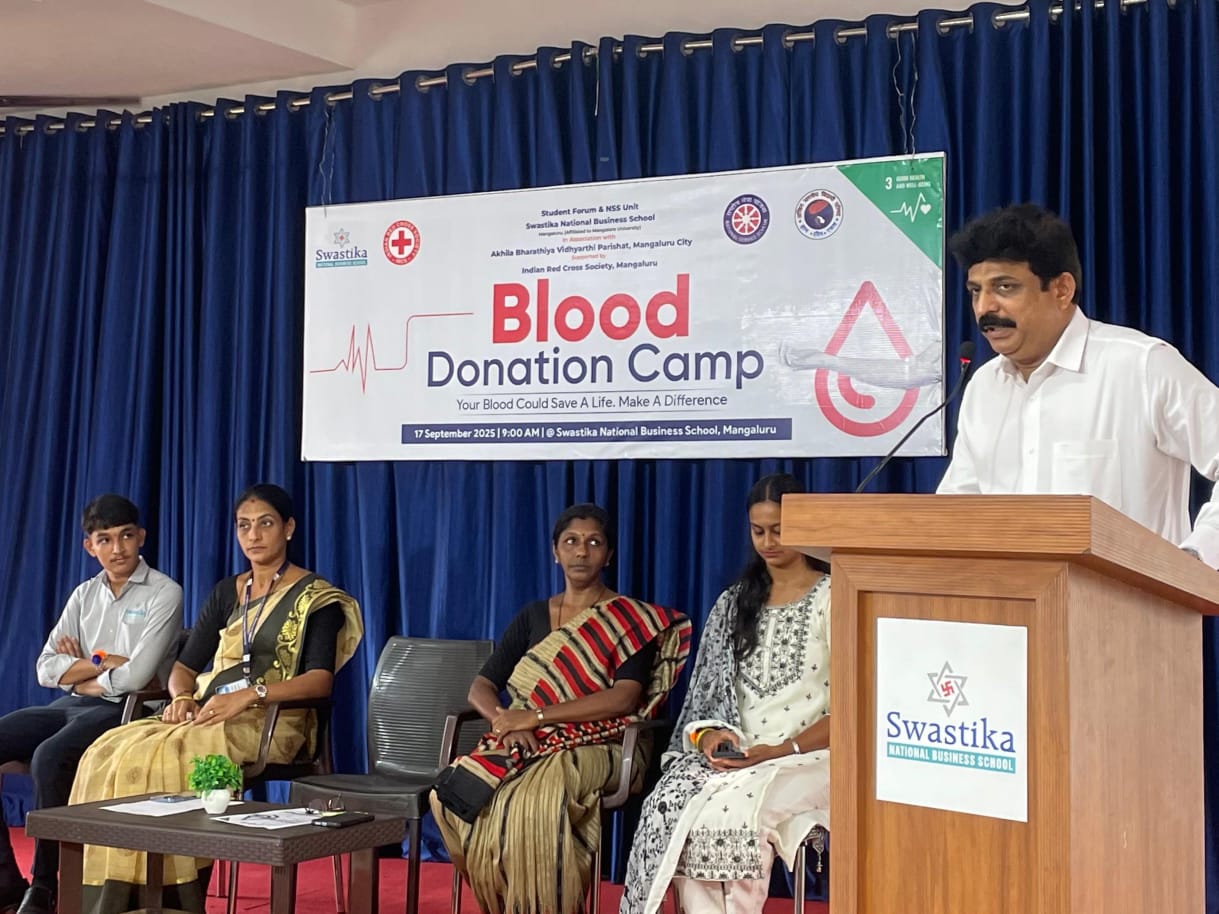 Mangalore, 17 September 2025: The Student Forum and NSS Unit of Swastika National Business School, Mangaluru, in association with Akhila Bharathiya Vidhyarthi Parishat, Mangaluru City and supported by the Indian Red Cross Society, Mangaluru, successfully organized a Blood Donation Camp at the college campus.