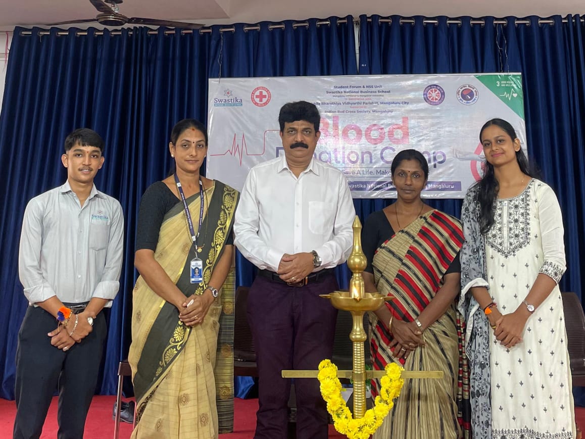 Mangalore, 17 September 2025: The Student Forum and NSS Unit of Swastika National Business School, Mangaluru, in association with Akhila Bharathiya Vidhyarthi Parishat, Mangaluru City and supported by the Indian Red Cross Society, Mangaluru, successfully organized a Blood Donation Camp at the college campus.