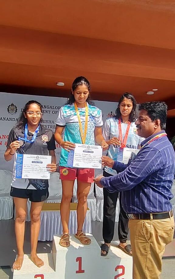 The cherry on top: Rachana has been selected to represent Mangalore University at the prestigious South West Zone Swimming Championship, a testament to her exceptional skill and dedication.