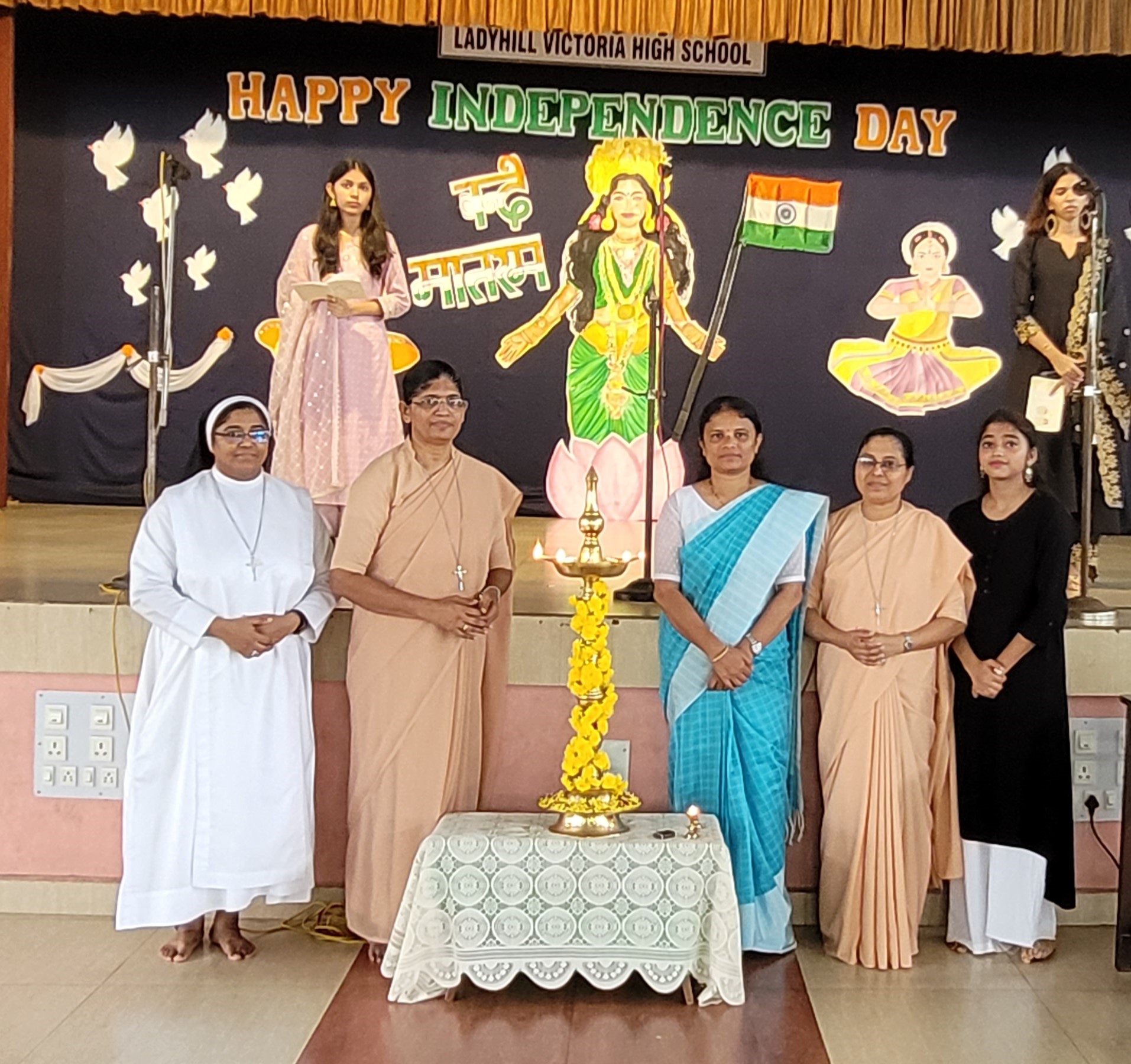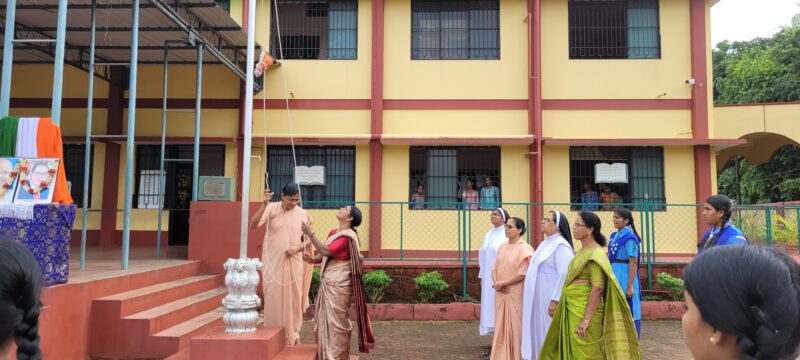 Mangalore, August 15, 2024 : The 78th Independence Day celebration at Ladyhill Victoria High School was celebrated with great enthusiasm. The program commenced with the stirring rendition of “Vande Matram,” followed by the ceremonial flag hoisting alongside Principal Sister Ujwala AC, Vice Principal Sister Sharmila AC, and Assistant Headmistress Sister Pushpa AC. This act was a moment of pride, symbolizing the unity and integrity of the nation.