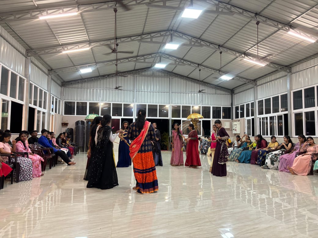 The highlight of the evening was the Dandiya performance, where students and faculty danced together, creating an atmosphere of joy and togetherness. The inaugurator joined the celebration and conveyed his festive wishes to all students.