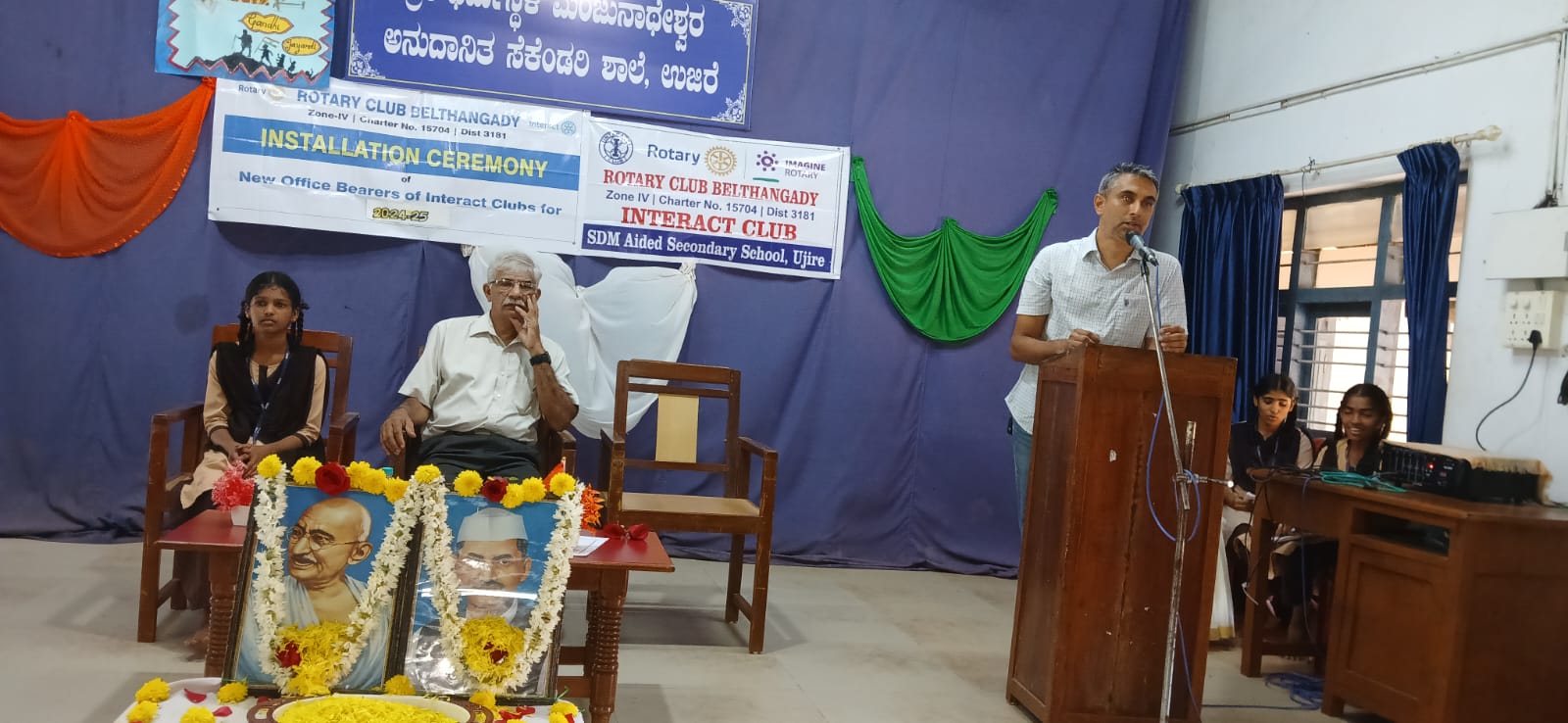 ಉಜಿರೆ, ಒಕ್ಟೋಬರ್ 02, 2024: ಶ್ರೀ ಧ.ಮಂ ಅನುದಾನಿತ ಸೆಕೆಂಡರಿ ಶಾಲೆ ಉಜಿರೆ ಶಾಲೆಯಲ್ಲಿ ರೋಟರಿ ಇಂರ್ಯಾಕ್ಟ್ ಕ್ಲಬ್ ನ ಸಹಯೋಯೋಗದಲ್ಲಿ ಅಯೋಜಿಸಿರುವ ಗಾಂಧಿ ಜಯಂತಿ ಆಚರಣೆ ನಡೆಯಿತು. ಮುಖ್ಯ ಅತಿಥಿಗಳು ಸಂದೇಶ ಕುಮಾರ್ ರಾವ್,ಕೃಷಿಕರು ಮತ್ತು ಉದ್ಯಮಿ,ಬೆಳ್ತಂಗಡಿ ಇವರು ಮಹಾತ್ಮ ಗಾಂಧೀಜಿ ಮತ್ತು ಲಾಲ್ ಬಹುದ್ದೂರ್ ಅವರ ಜನ್ಮದಿನಾಚರಣೆಯ ಬಗ್ಗೆ ವಿದ್ಯಾರ್ಥಿಗಳಿಗೆ ಅಹಿಂಸಾ ತತ್ವ ಅಸºಕರ ಚಳುವಳಿ ಉಪ್ಪಿ÷್ಪನ ಸತ್ವಾಗ್ರಹ ಅದೇ ರೀತಿ ರೋಟರಿ ಇಂರ್ಯಾಕ್ಟ್ ಕ್ಲಬ್ನ ಮಹತ್ವ ಇವುಗಳ ಬಗ್ಗೆ ತಿಳಿಸಿದರು