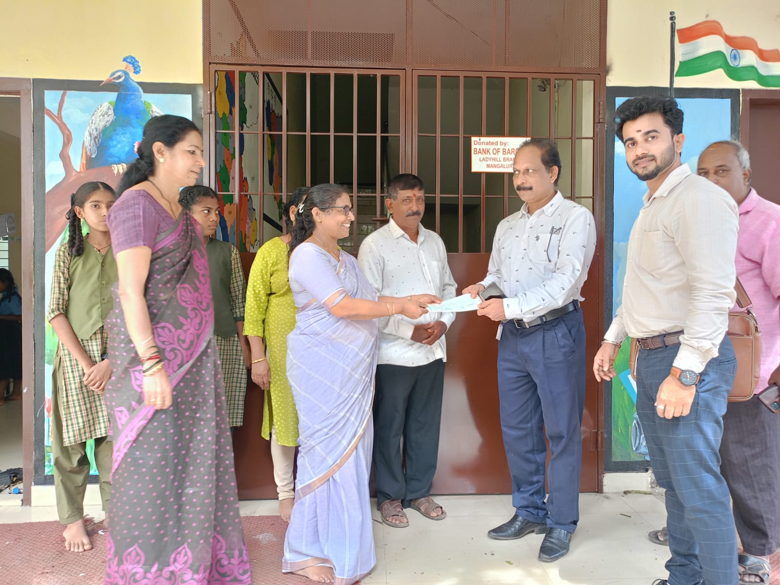 Mangaluru, September 2025: Government Higher Primary School, Kapikad, is proud to share that the Ladyhill branch of Baroda Bank has extended generous support to our institution by donating a steel gate for the staircase of the Viveka Room. This contribution, made possible through the dedicated efforts of the Bank Manager, staff members, and Hallimane management, has greatly enhanced the safety and security of our school premises.