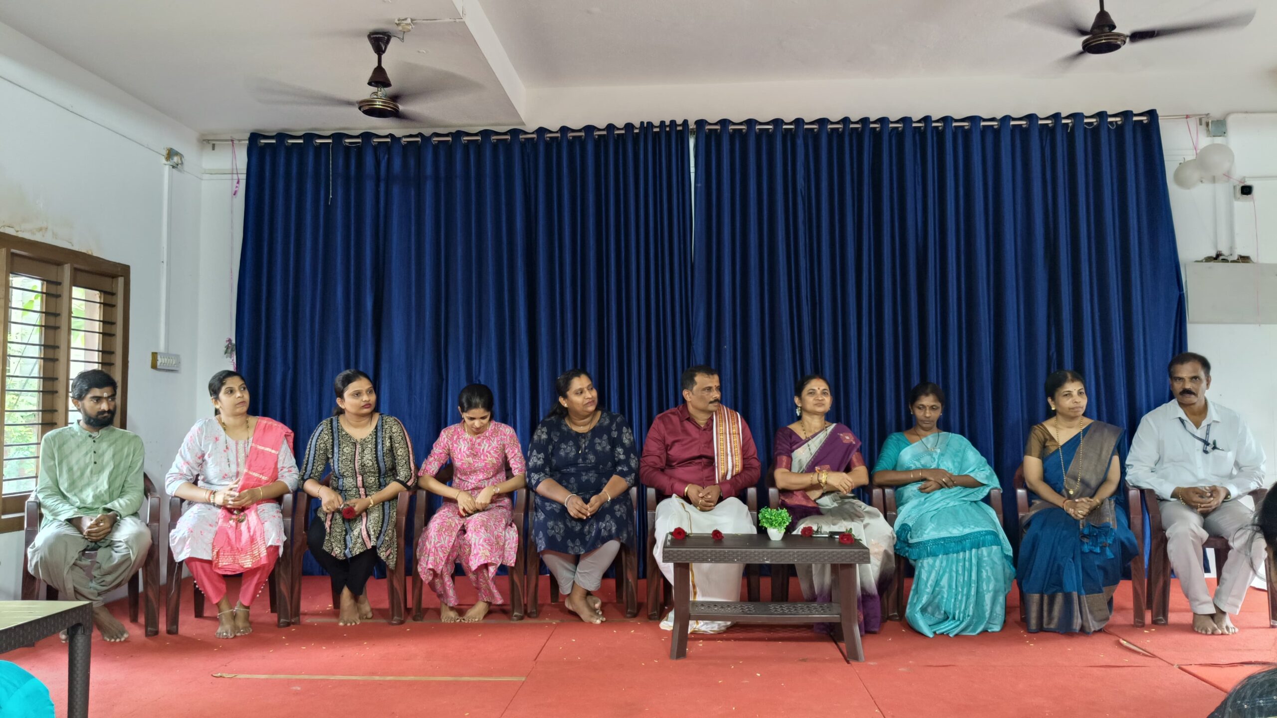 The ceremony began with a traditional invocation, where students offered prayers to honor their mentors. Mrs. Vidyalaxmi Shetty delivered the opening remarks, setting the tone for the occasion. This was followed by a presidential address by Dr. Raghavendra Holla, who reflected on the enduring importance of the Guru-Shishya tradition.