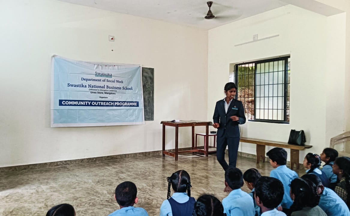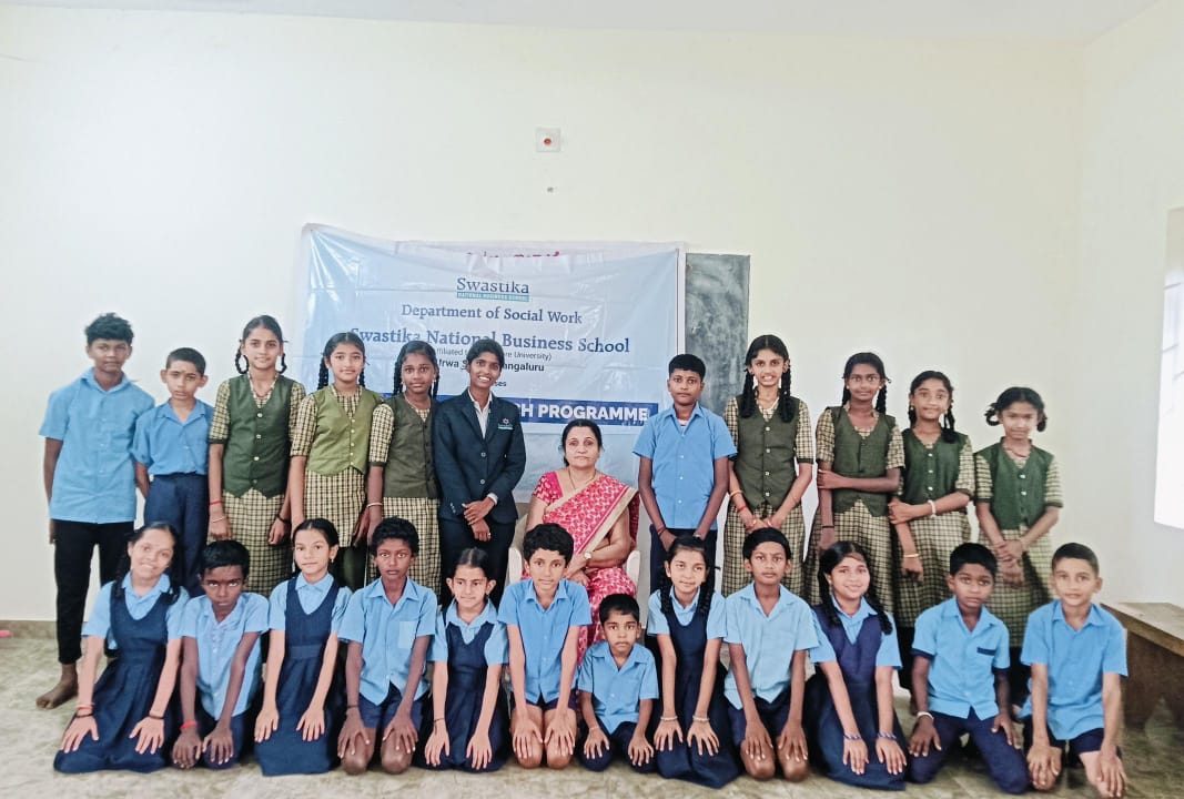 The programme began at 1:30 PM and was conducted in association with DKZP Government Higher Primary School. Students actively participated in the activities and expressed that the session boosted their motivation and readiness for upcoming exams.The event was efficiently coordinated by Ms. Nayana, a III BSW student of Swastika National Business School, ensuring smooth execution of the outreach.