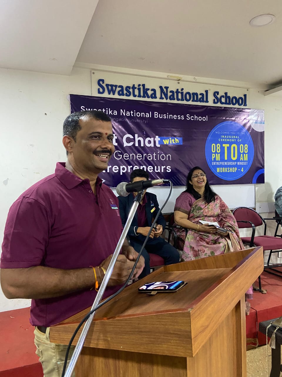 The ceremony began with a warm welcome by Dr. Raghavendra Holla N, Chairman of Swastika National Business School, who reiterated the institution’s commitment to fostering entrepreneurial skills among students. He highlighted the importance of experiential learning and innovation in achieving business excellence.