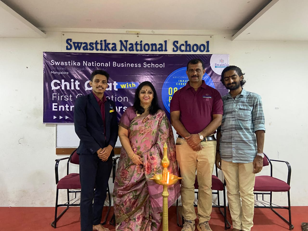 The ceremony began with a warm welcome by Dr. Raghavendra Holla N, Chairman of Swastika National Business School, who reiterated the institution’s commitment to fostering entrepreneurial skills among students. He highlighted the importance of experiential learning and innovation in achieving business excellence.