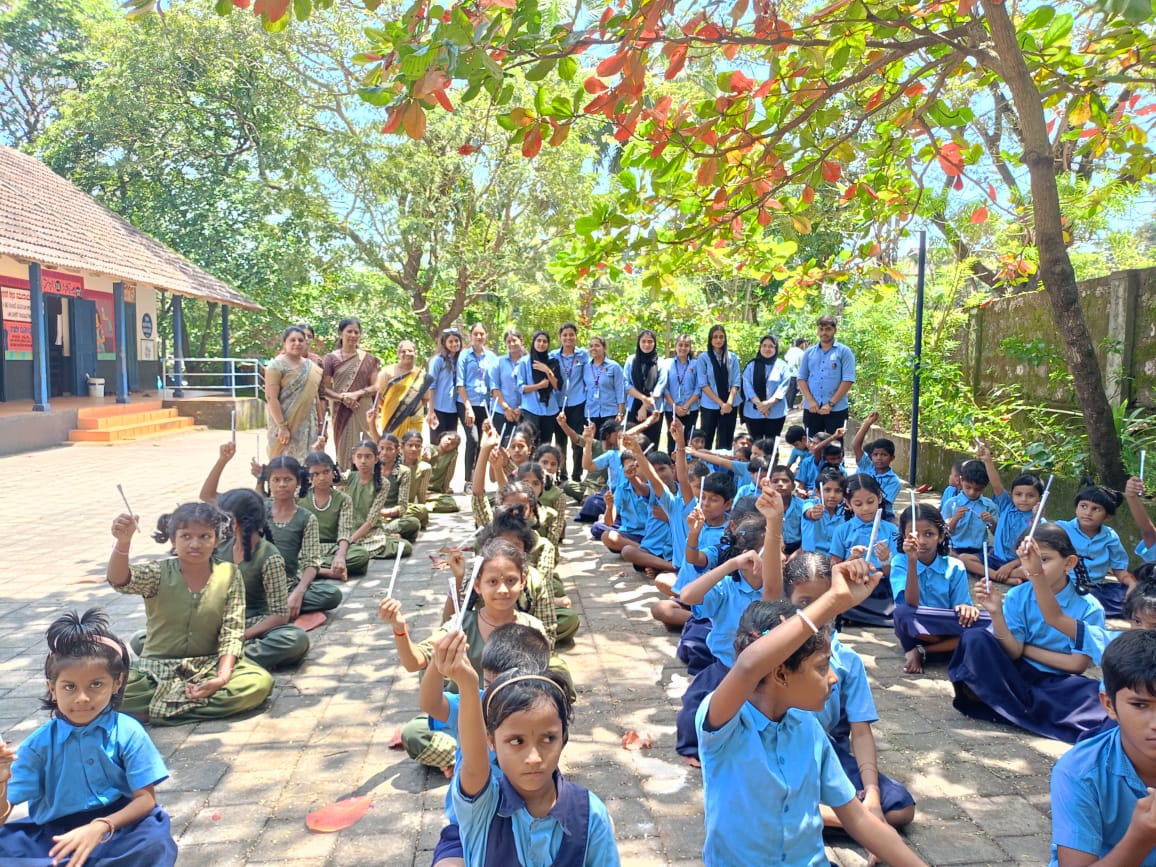 The visiting students carried out a meaningful activity by distributing eco-friendly paper pens to our school children. This initiative was designed to promote environmental awareness, reduce plastic usage, and instill social responsibility among young learners.