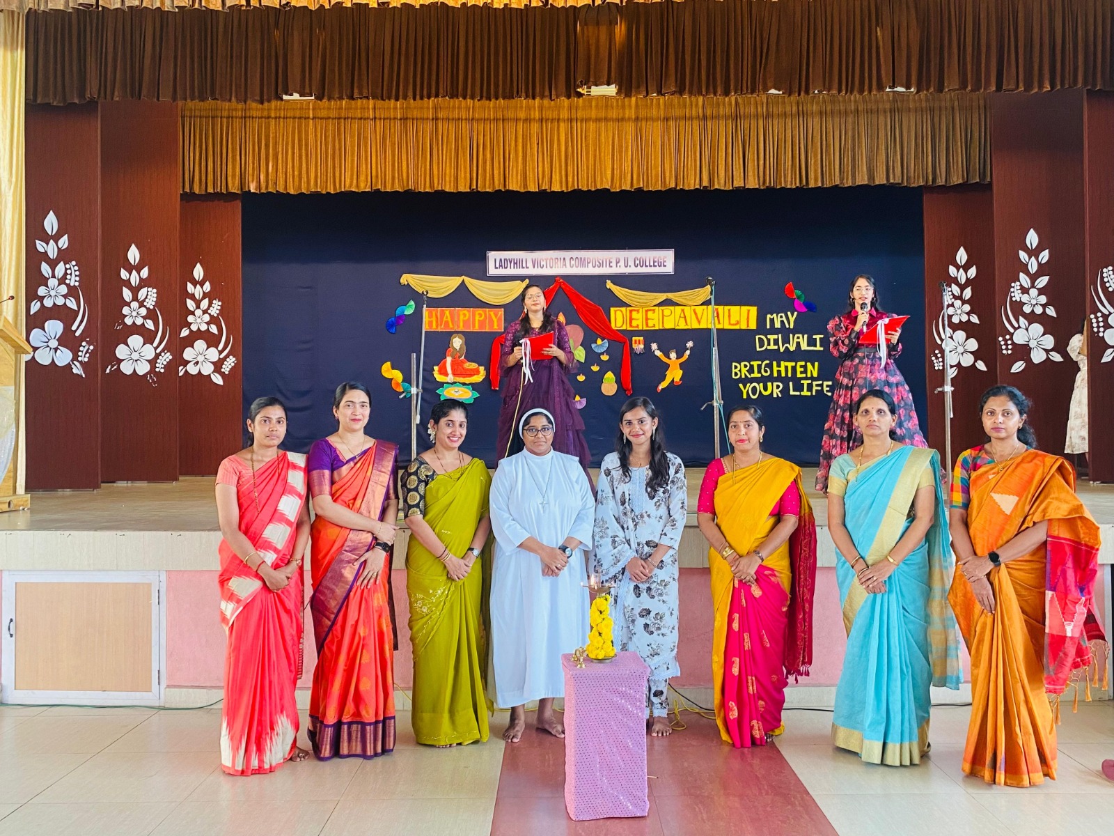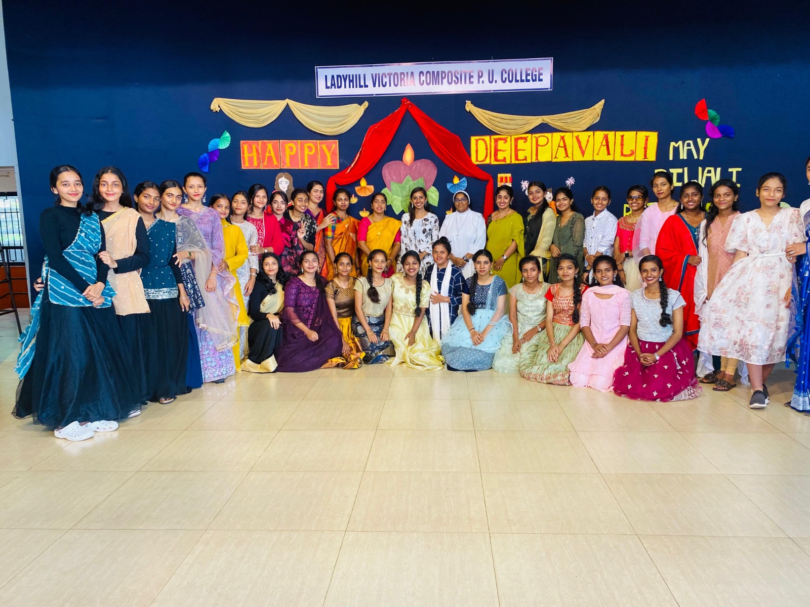 Mangaluru: Deepavali is a festival of lights and symbolizes the spiritual thought “Light a lamp of wisdom, dispel the darkness of ignorance”. Ladyhill Victoria Composite P. U . College, Urwa Mangaluru celebrated Deepavali at college auditorium on 6th November 2024. The program started at 2:00PM by invoking God’s blessings through a prayer service and welcoming the guest by student emcees Zulaika Shahina and Jainabu Shazma of II Science. The Diwali celebration was initiated with the lighting of the lamp.