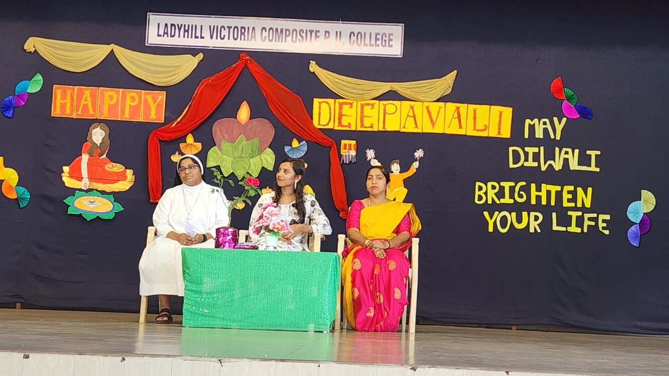Mangaluru: Deepavali is a festival of lights and symbolizes the spiritual thought “Light a lamp of wisdom, dispel the darkness of ignorance”. Ladyhill Victoria Composite P. U . College, Urwa Mangaluru celebrated Deepavali at college auditorium on 6th November 2024. The program started at 2:00PM by invoking God’s blessings through a prayer service and welcoming the guest by student emcees Zulaika Shahina and Jainabu Shazma of II Science. The Diwali celebration was initiated with the lighting of the lamp.