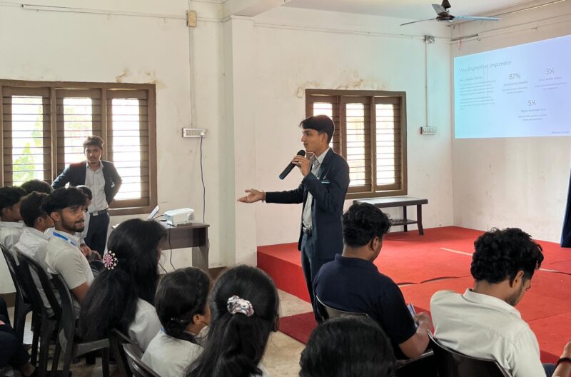 Shreyas, Soft Skills Trainer, introduced students to the fundamentals of LinkedIn, explaining its purpose, features, and how it serves as a powerful tool for career development. His session helped students understand how to navigate the platform, connect with professionals, and begin their journey toward building a strong digital identity.