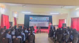 The program commenced with a prayer, creating a positive and welcoming atmosphere. Principal Sowmya Shetty presided over the event and extended a heartfelt welcome to the freshmen, highlighting the importance of academic commitment and active participation in college life. The ceremonial lighting of the lamp symbolized the beginning of a new academic journey filled with knowledge and wisdom.