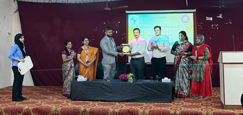 Adding to the event’s energy, the NSS students showcased their talents by performing NSS songs. Ms. Vanishree Y., Coordinator of IQAC, along with the Heads of various departments, Ms. Ithashree M. and Ms. Chaithra N.V., who serve as the NSS Program Officers at PAFGC, were present alongside members of the NSS units to support the occasion.