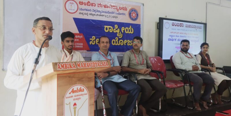 ಪುತ್ತೂರು, ಸೆಪ್ಟೆಂಬರ್ 4, 2024 : ರಾಷ್ಟ್ರೀಯ ಸೇವಾ ಯೋಜನೆ ಇಂದು ಶೈಕ್ಷಣಿಕ ವ್ಯವಸ್ಥೆಯಲ್ಲಿ ಪಠ್ಯೇತರ ಚಟುವಟಿಕೆಯಾಗಿ ವಿದ್ಯಾರ್ಥಿಗಳಿಗೆ ದೊರೆಯುತ್ತಿದೆ. ಆದರೆ ಅದು ಪಠ್ಯವಿಷಯವಾಗಿಯೇ ಎಲ್ಲ ವಿದ್ಯಾರ್ಥಿಗಳಿಗೆ ದೊರೆಯಬೇಕಾದ ಅವಶ್ಯಕತೆ ಇದೆ. ವ್ಯಕ್ತಿತ್ವವನ್ನು ರೂಪುಗೊಳಿಸುವ ರಾಷ್ಟ್ರೀಯ ಸೇವಾ ಯೋಜನೆಯನ್ನು ಪ್ರಮುಖ ಅಧ್ಯಯನ ವಿಷಯವನ್ನಾಗಿಸಿದಾಗ ಸೇವಾ ಮನೋಭಾವನೆಯ ಸಮಾಜ ನಿರ್ಮಾಣವಾಗುವುದಕ್ಕೆ ಹೆಚ್ಚಿನ ಅನುವು ದೊರಕುತ್ತದೆ ಎಂದು ಅಂಬಿಕಾ ಸಮೂಹ ಶಿಕ್ಷಣ ಸಂಸ್ಥೆಗಳ ಅಧ್ಯಕ್ಷ ಸುಬ್ರಹ್ಮಣ್ಯ ನಟ್ಟೋಜ ಹೇಳಿದರು. ಅವರು ನಗರದ ನಟ್ಟೋಜ ಫೌಂಡೇಶನ್ ಟ್ರಸ್ಟ್ ಮುನ್ನಡೆಸುತ್ತಿರುವ ಬಪ್ಪಳಿಗೆಯಲ್ಲಿನ ಅಂಬಿಕಾ ಮಹಾವಿದ್ಯಾಲಯದ ರಾಷ್ಟ್ರೀಯ ಸೇವಾ ಯೋಜನೆ ಘಟಕದ ವಾರ್ಷಿಕ ಚಟುವಟಿಕೆಗಳನ್ನು ಉದ್ಘಾಟಿಸಿ ಮಂಗಳವಾರ ಮಾತನಾಡಿದರು.