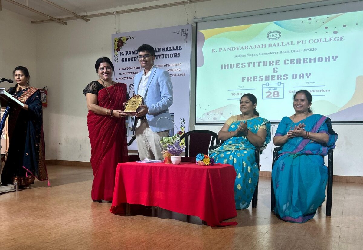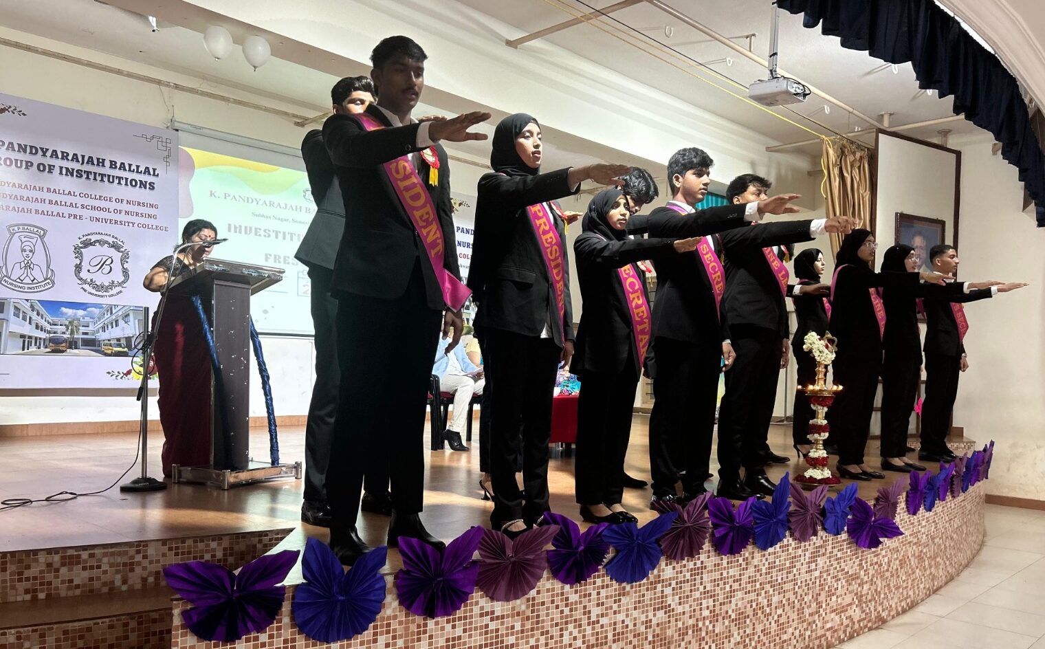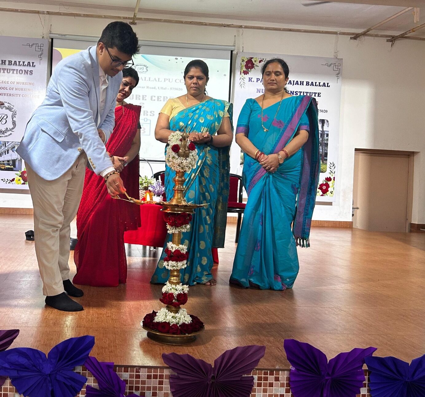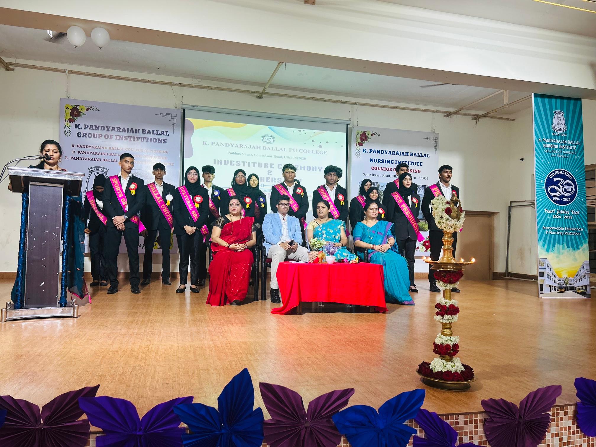ಮುಖ್ಯ ಅತಿಥಿಯಾಗಿ ಆಗಮಿಸಿದ ಕೆ.ಪಾಂಡ್ಯರಾಜ್ ಬಲ್ಲಾಳ್ ಪದವಿ ಪೂರ್ವ ಕಾಲೇಜಿನ ಆಡಳಿತ ಸಂಸ್ಥೆಯ ಪ್ರತಿನಿಧಿಯಾದ ಶ್ರೀ ಇಶಾನ್ ಬಲ್ಲಾಳ್ ರವರು ದೀಪ ಬೆಳಗಿಸುವ ಮೂಲಕ ಕಾರ್ಯಕ್ರಮವನ್ನು ಉದ್ಘಾಟಿಸಿ, ವಿದ್ಯಾರ್ಥಿಗಳಿಗೆ ಅಧಿಕಾರ ಪ್ರಧಾನವನ್ನು (ಬ್ಯಾಜ್ ಗಳನ್ನು ) ಕೊಡುವ ಮೂಲಕ ಶುಭ ಹಾರೈಸಿ ಮಾತನಾಡಿದರು.