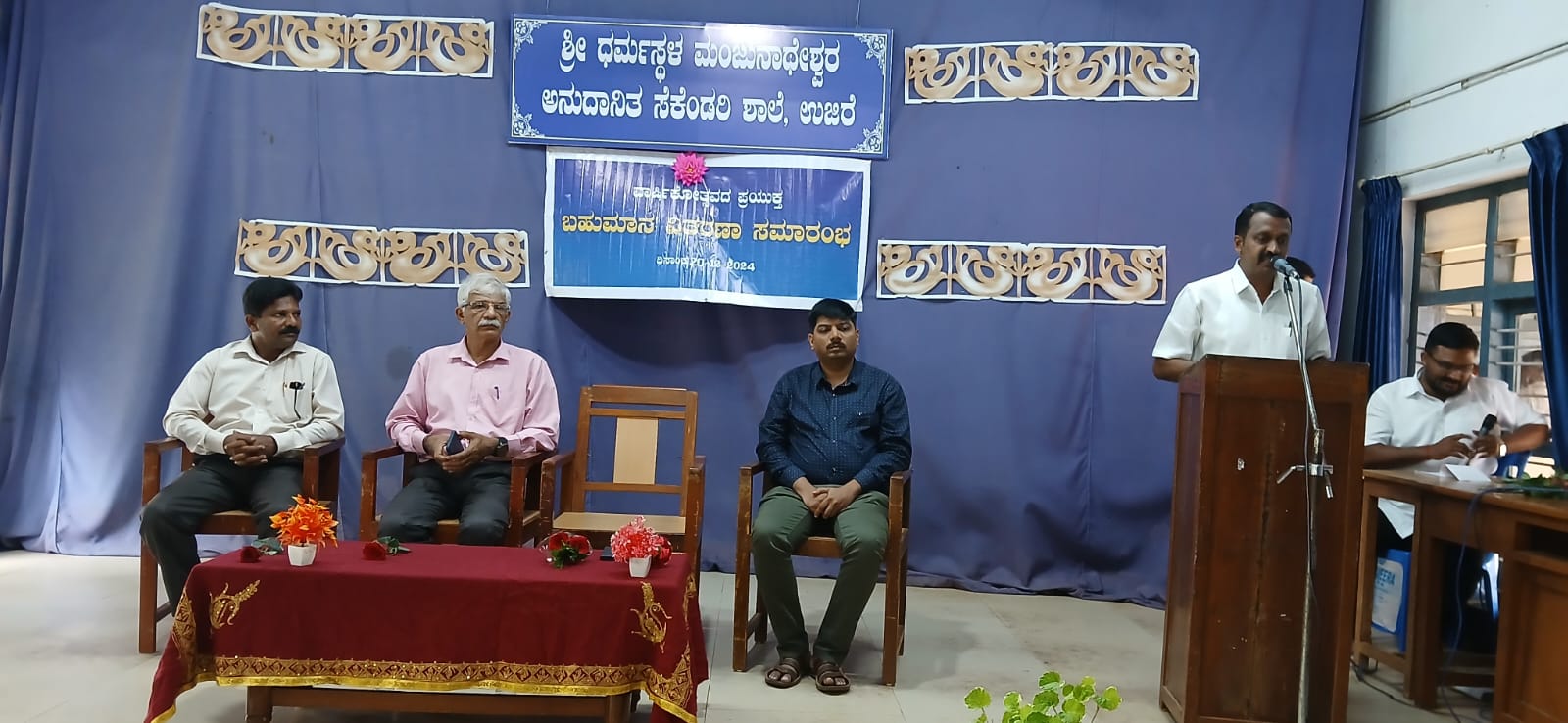 ಉಜಿರೆ, 21 ಡಿಸೆಂಬರ್ 2024: ಶ್ರೀ ಧ.ಮಂ. ಅನುದಾನಿತ ಸೆಕೆಂಡರಿ ಶಾಲೆಯಲ್ಲಿ ಪ್ರತಿಭಾ ಪುರಸ್ಕಾರ ಮತ್ತು ಬಹುಮಾನ ವಿತರಣೆ ಕಾರ್ಯಕ್ರಮ ಡಿ. 20ರಂದು ನಡೆಯಿತು. ರಾಜ್ಯೋತ್ಸವ ಪ್ರಶಸ್ತಿ ವಿಜೇತ ‘ಬದುಕು ಕಟ್ಟೋಣ ಬನ್ನಿ’ ತಂಡದ ಸಂಚಾಲಕ, ಉದ್ಯಮಿ ಹಾಗೂ ಶಾಲಾ ಹಳೆ ವಿದ್ಯಾರ್ಥಿ ಮೋಹನ್ ಕುಮಾರ್ ಮುಖ್ಯ ಅತಿಥಿಯಾಗಿದ್ದರು.