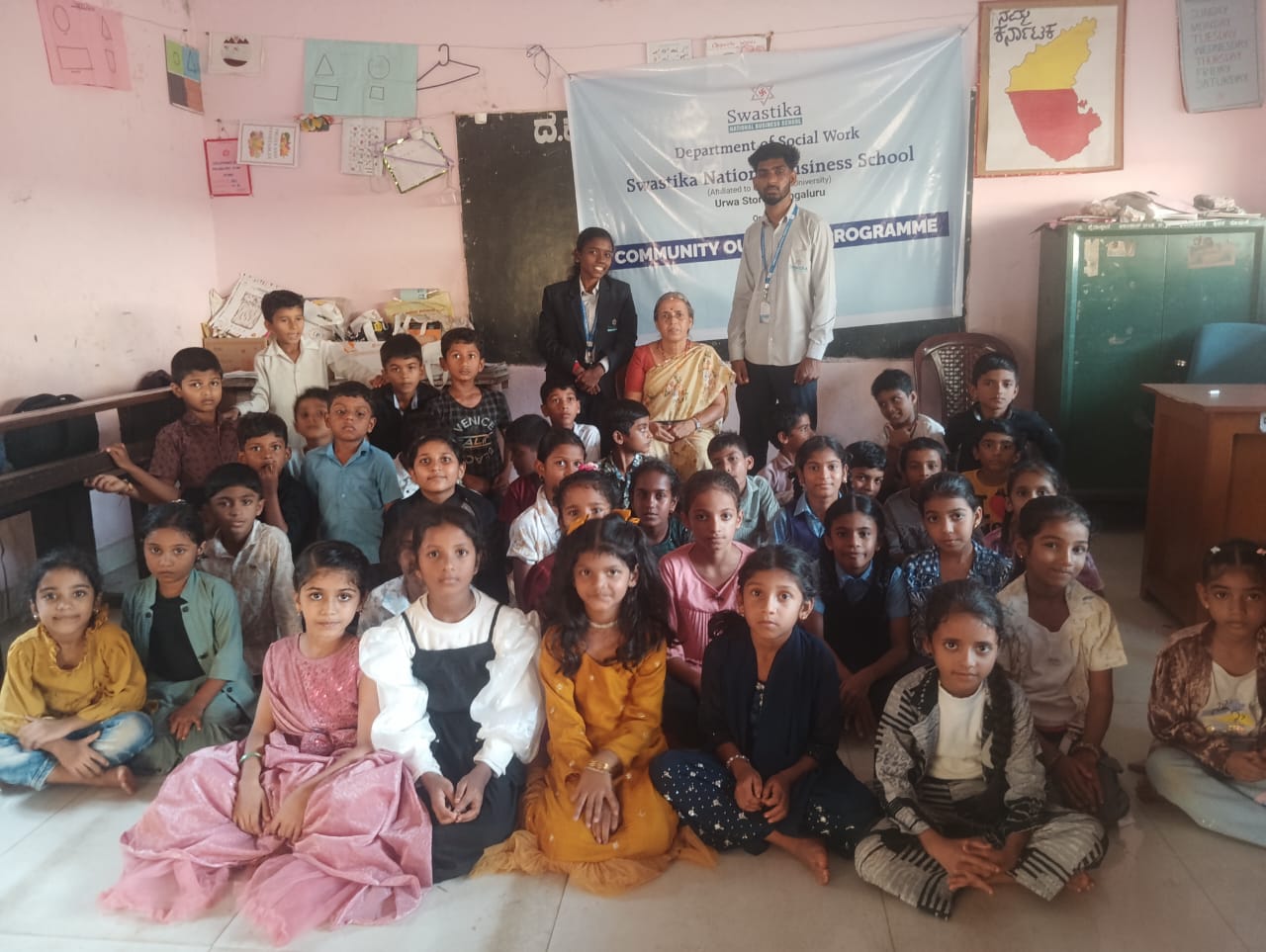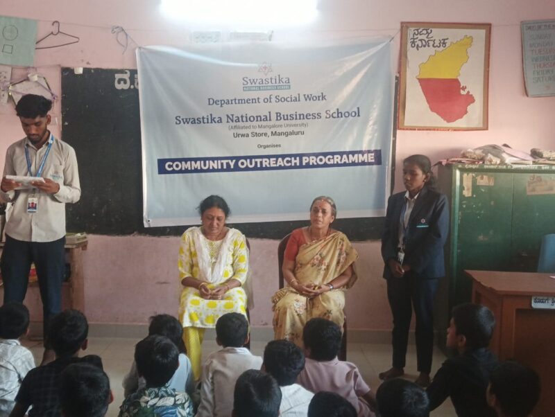 Mangalore, 13 November 2025: A talk on Eco Equity was conducted today at Dakshina Kannada Zilla Panchayath Higher Primary School, Pudhu Mapila, Farangipete. The session was led by Ms. Geetha, BSW 2nd year student of Swastika National Business School, and was organized by Mr. Gagan K. N, BSW 2nd year.