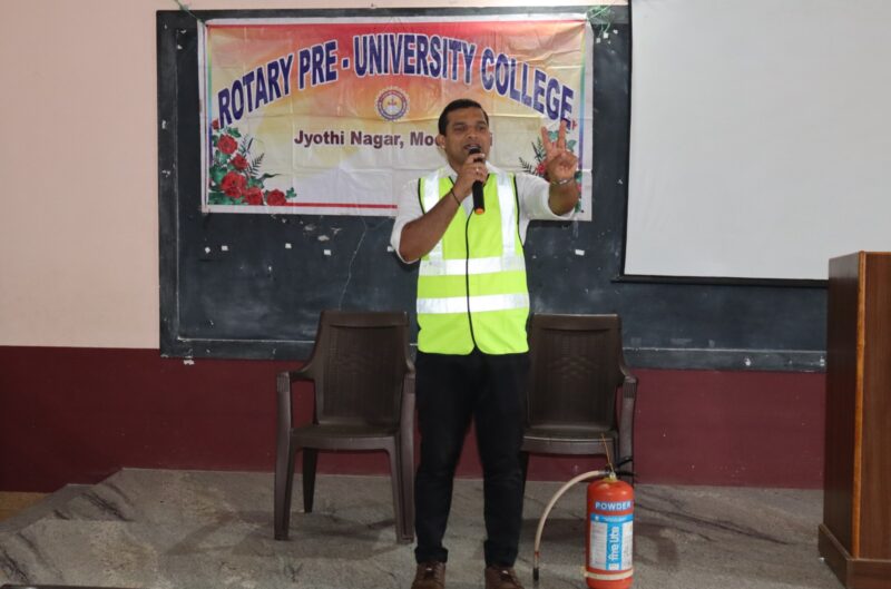 Moodubidre, 13 June 2025: A Fire Safety, Health Safety, and Disaster Management Awareness Program was successfully conducted at Rotary Pre-University College, Moodubidre. The program was led by Mr. Sathyaraj, a professional freelance Fire & Safety Officer based in Mangalore, who voluntarily initiated the session as part of his commitment to public safety education.