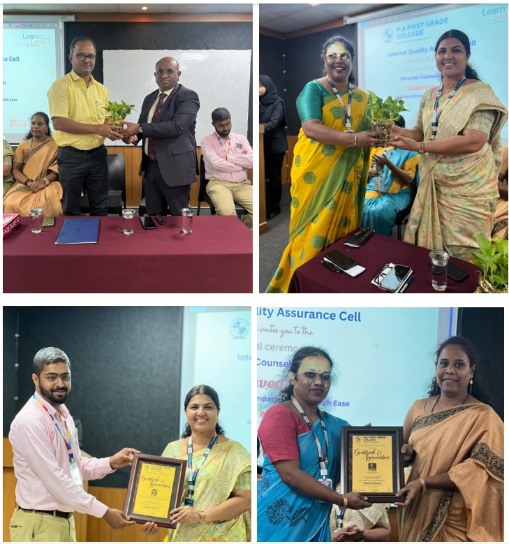Mangalore, 15 April 2025: P.A First Grade College in association with IQAC inaugraded the Counselling cell “Samvedana” at Multipurpose Hall . The Counselling cell was inaugerated by the Chief Guest , Mr.Lalith Prasad Rai, Head BPM ,Infosys Ltd. Mangalore symbolically by waterring the plant and by releasing the counselling cell poster .Mr.Lalith Rai addressed the students the need of the cell and issues to connect .