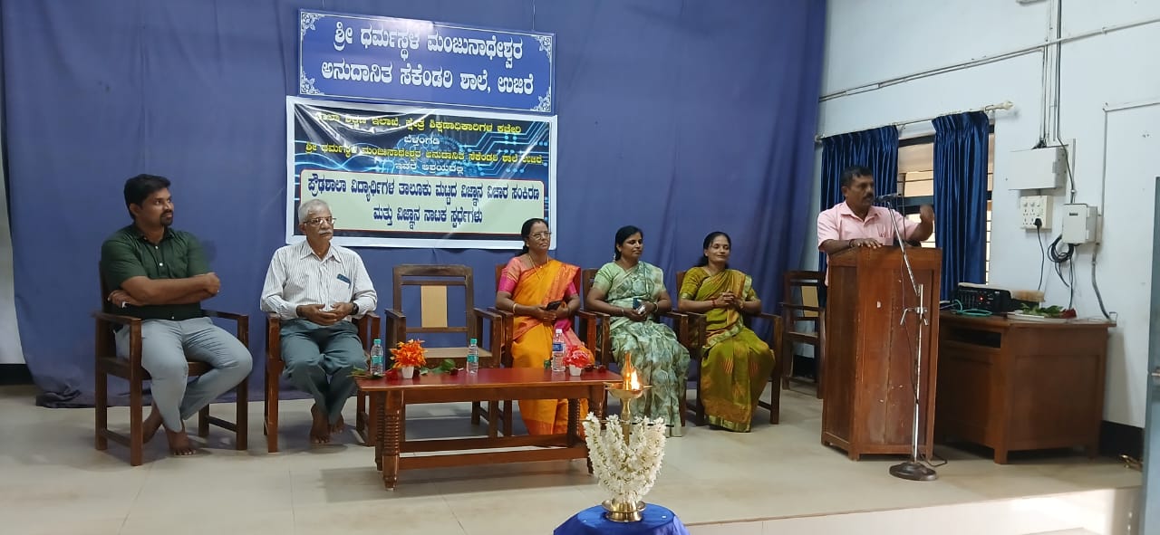 ಉಜಿರೆ, ಸೆಪ್ಪೆಂಬರ್ 09, 2024 : ಶ್ರೀ ಧ.ಮಂ. ಅನುದಾನಿತ ಸೆಕೆಂಡರಿ ಶಾಲೆ ಉಜಿರೆ ಶಾಲೆಯಲ್ಲಿ ವಿಜ್ಞಾನ ವಿಚಾರ ಸಂಕಿರಣ ಮತ್ತು ವಿಜ್ಞಾನ ನಾಟಕ ಸ್ಪರ್ಧೆಗಳು ನಡೆಯಿತು.ಕ್ಷೇತ್ರ ಶಿಕ್ಷಣಾಧಿಕಾರಿಗಳಾದ ಶ್ರೀಮತಿ ತಾರಕೇಸರಿ ದೀಪ ಬೆಳಗಿಸಿ ಉದ್ಘಾಟಿಸಿ ಮಾತಾಡಿ ಹಳ್ಳಿಯ ಜೀವನ ಶೈಲಿ ಅನುಭವ ಹಾಗೂ ಈಗಿನ Artificial Intelligence(AI) ಬಗ್ಗೆ ಮಾಹಿತಿ ನೀಡಿ ವಿದ್ಯಾರ್ಥಿಗಳು “ಕತ್ತಲನ್ನು ಹೋಗಲಾಡಿಸುವ ದೀಪ ನೀವಾಗಿ “ ಎಂದರು.ಕಾರ್ಯಕ್ರಮದ ಅಧ್ಯಕ್ಷೆತೆಯನ್ನು ವಿಜ್ಞಾನ ವಿಷಯ ವೇದಿಕೆಯ ಅಧ್ಯಕ್ಷರಾದ ಶ್ರೀ ರಾಧಕೃಷ್ಣ.ಕೆ ಇವರು ಸ್ವ ಉದ್ಯೋಗ ಕಡೆಗೆ ಗಮನ ಕೊಡಿ ಎಂದರು. ಪ್ರೌಢ ಶಾಲಾ ಶಿಕ್ಷಣ ಸಂಯೋಜಕರು ಹಾಗೂ ಕಾರ್ಯಕ್ರಮದ ನೋಡಲ್ ಅಧಿಕಾರಿಯಾದ ಶ್ರೀ ಸಿದ್ಧಲಿಂಗಸ್ವಾಮಿ ಮಾತಾಡಿ ಸ್ವಚ್ಛತೆಯ ಬಗ್ಗೆ ನಮ್ಮ ಮನೆ ಪರಿಸರ ಸುತ್ತಮುತ್ತಲಿನ ವಾತಾವರಣದ ಸ್ವಚ್ಛತೆಯನ್ನು ಕೃತಕ ಬುದ್ಧಿಮತ್ತೆಯನ್ನು (AI)ಯನ್ನು ಉಪಯೋಗಿಸಿ ಯಾವ ರೀತಿ ಸ್ವಚ್ಛತೆಯನ್ನು ಕಾಯ್ದುಕೊಳ್ಳಬಹುದು ಎನ್ನುವ ಮಾಹಿತಿ ನೀಡಿದರು.