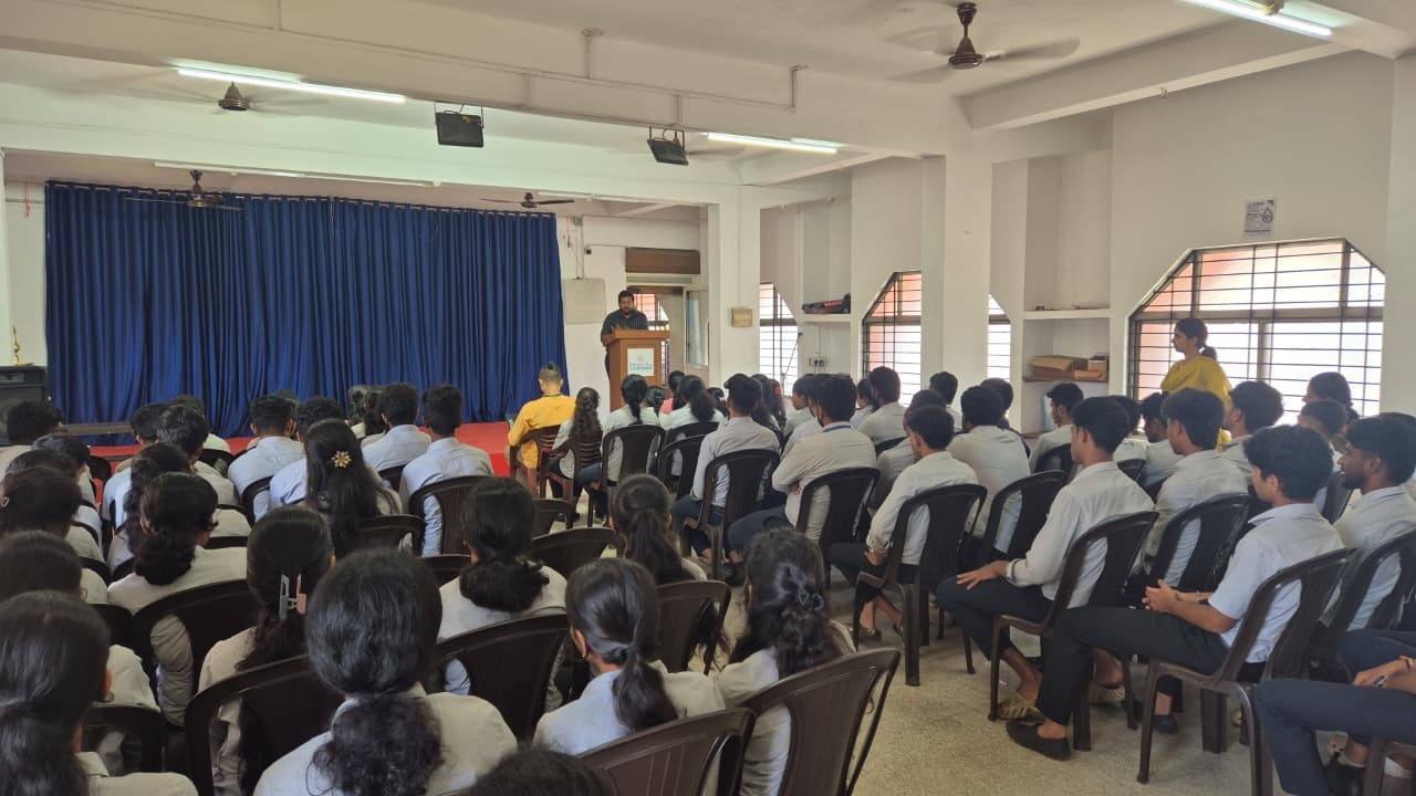 Six representatives from Sierra Learning led the session and interacted with the students. Safwan delivered the opening introduction, setting the tone for the program. Nayana spoke about the growing importance of Artificial Intelligence and advanced coding courses, while Madhumitha addressed the role of technology-driven skills in today’s job market. Arun gave a detailed introduction to all the courses offered by Sierra Learning, which include Data Science, Digital Marketing, Accounts Coding, Design, and Cloud Computing. Deepith and Amrutha added further insights on training methodologies, industry relevance, and placement assistance.
