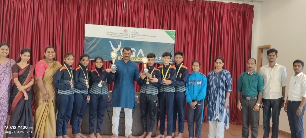 Mangaluru, 21 August 2025: The Department of Secondary Education, Dakshina Kannada, in association with Swastika National Business School, Mangaluru, organized a District-Level Yoga Competition for Pre-University students at Swastika Waterfront, Sulthan Bathery, Mangaluru. The event witnessed the enthusiastic participation of nearly 50 students from various PU colleges across the district, who showcased their talent, discipline, and passion for yoga.