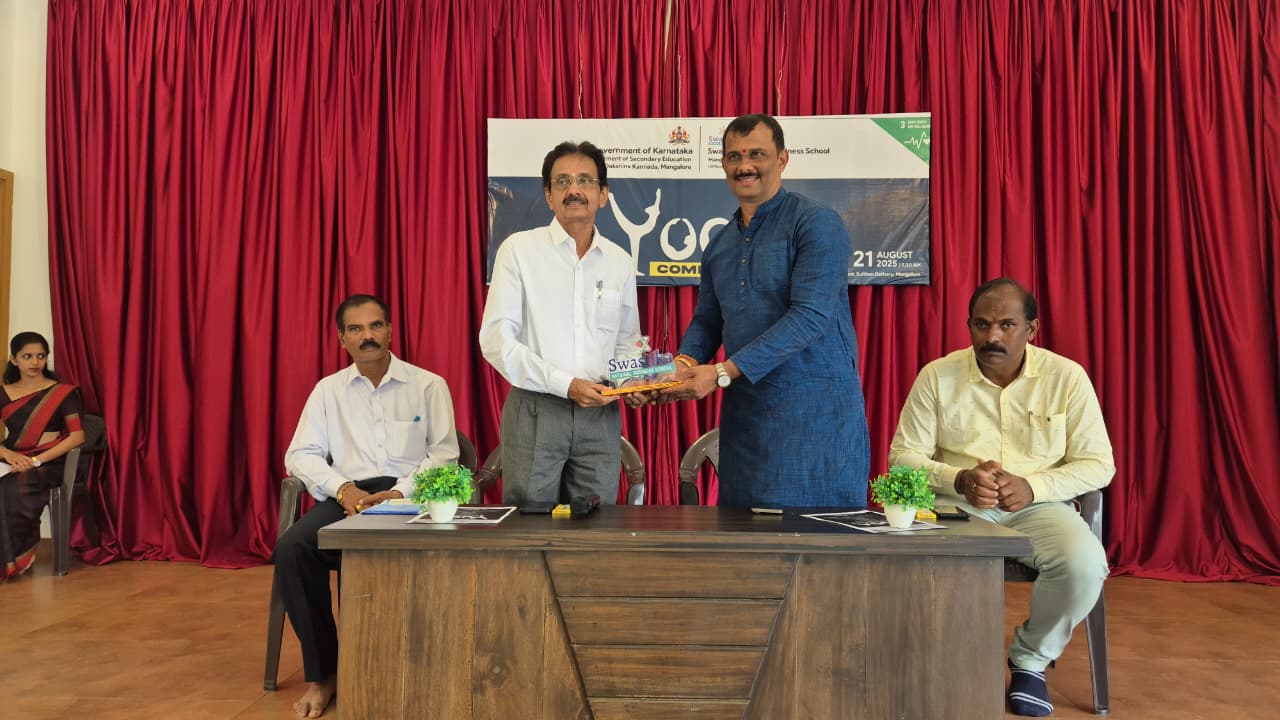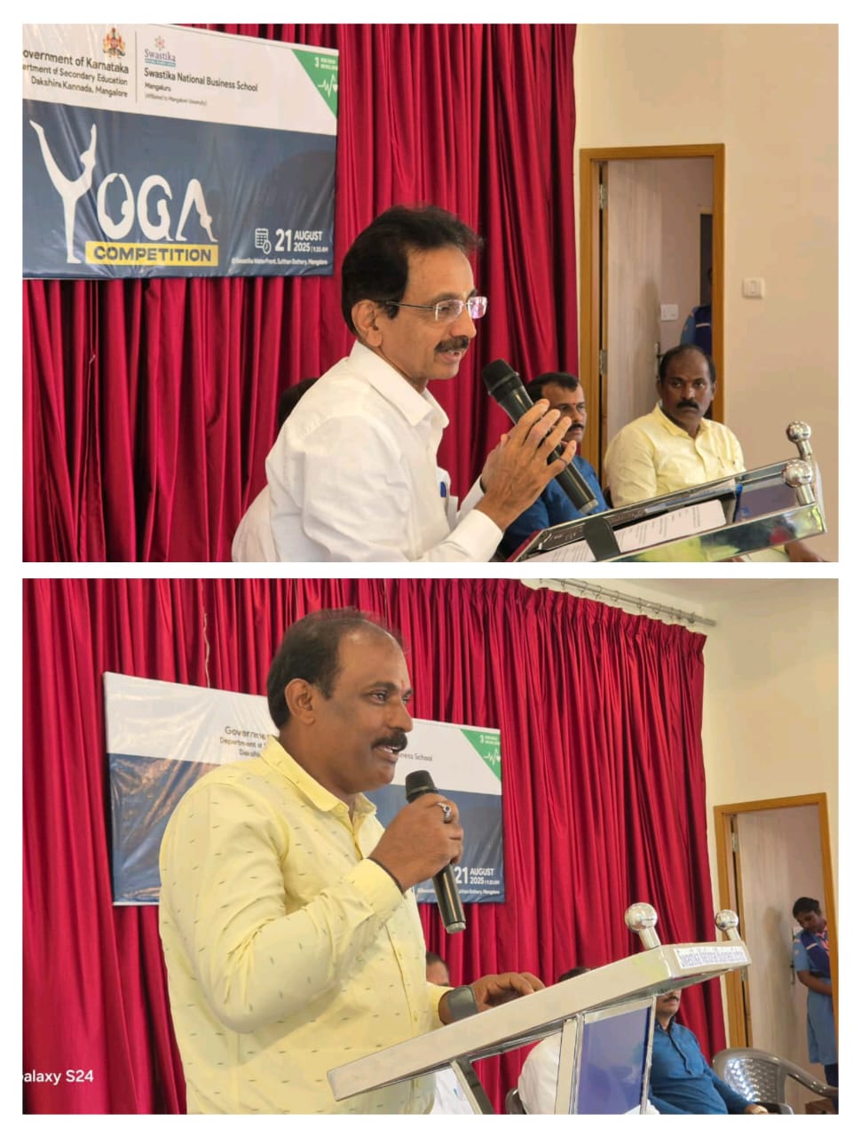 Sri Premanath Shetty, District Sports Officer, Dakshina Kannada, graced the occasion as the Chief Guest. Sri Radhakrishna, President of the District Physical Education Director’s Association, and Smt. Rajeshwari H. H., Deputy Director, Department of Secondary Education, Dakshina Kannada, were the Guests of Honour. They highlighted the role of yoga in enhancing concentration, resilience, and overall student performance.