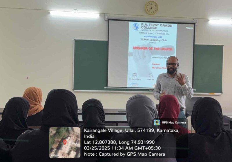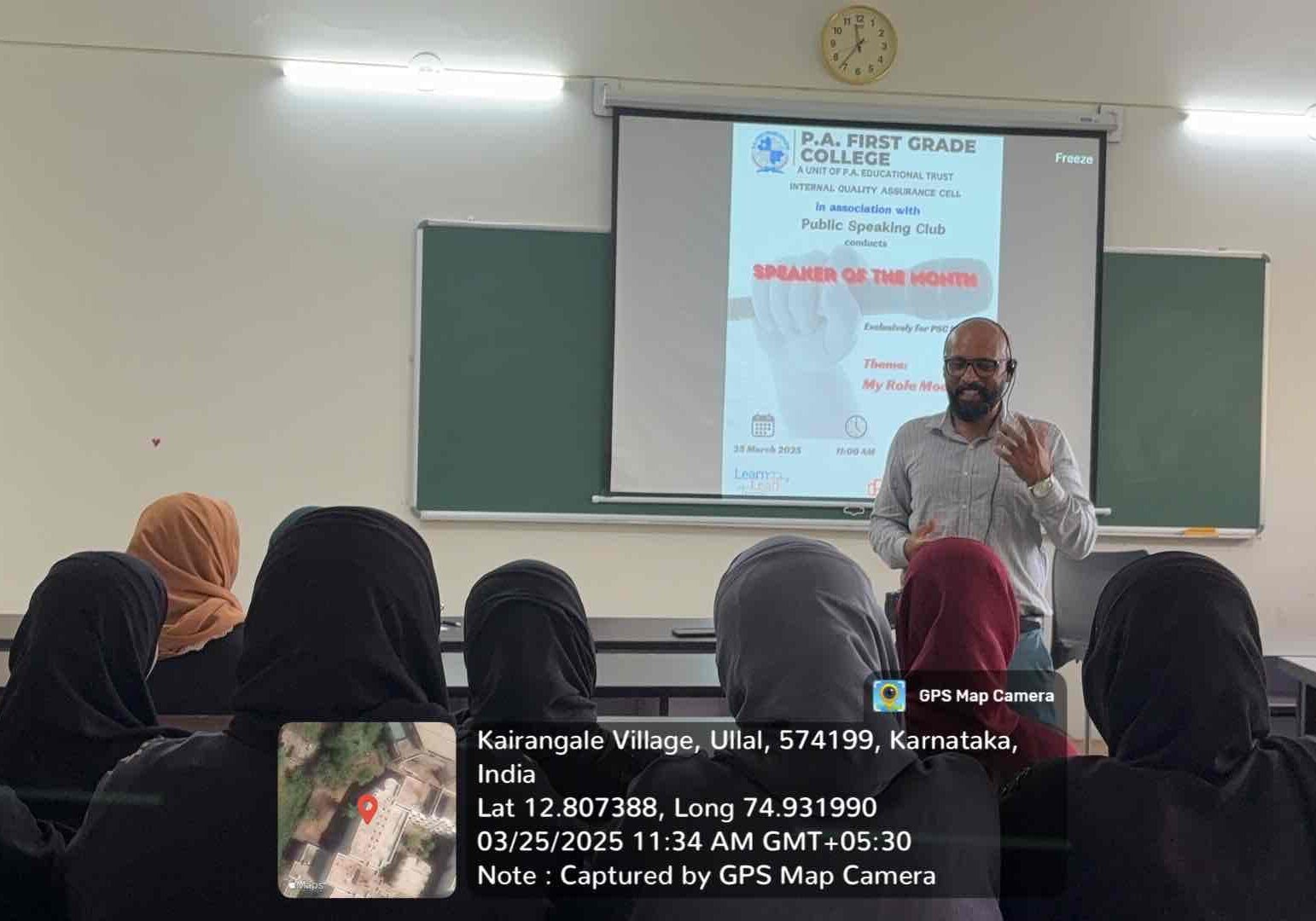 The Public Speaking Club of PA First Grade College conducted the Speaker of the Month (March) competition on 25th March 2025 in Seminar Hall 1.