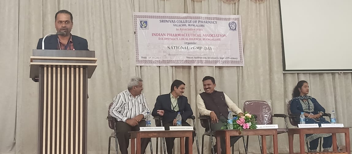 Srinivas College of Pharmacy, Mangalore, in association with the Indian Pharmaceutical Association Local Branch, Mangalore, organized a joint event to observe National cGMP Day and World Mental Health Day on October 10, 2025.