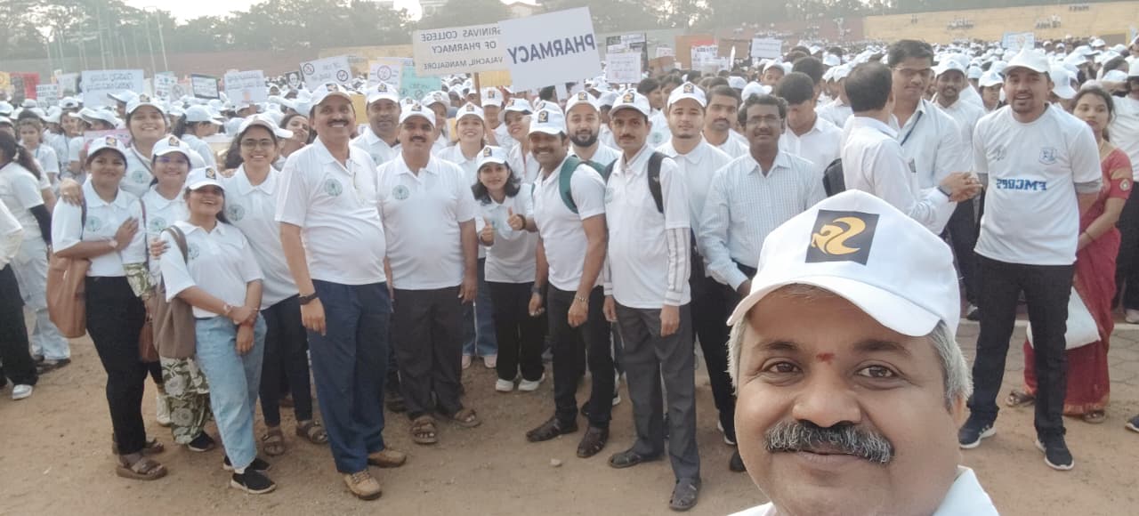 Mangaluru, November 29, 2025: Srinivas College of Pharmacy, Mangalore, made a strong and noteworthy participation in the massive Walkathon organized by the Rajiv Gandhi University of Health Sciences (RGUHS) at Mangala Stadium on Saturday, November 29, 2025, at 7:30 AM. The event, aimed at creating awareness on Organ Donation and Nasha Mukth Bharat, witnessed the participation of around 12,500 healthcare students from Medical, Dental, AYUSH, Pharmacy, Nursing, Physiotherapy, and Allied Health Sciences colleges across Dakshina Kannada.