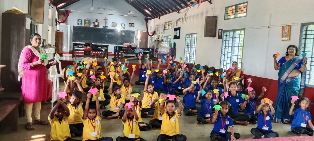 Mangaluru: A creative and engaging craft workshop was conducted at St. Joseph Higher Primary School, Mangaluru, bringing excitement and hands-on learning to the students. The session was led by the resource person, Mrs. Dhanalaxmi J., who guided the children through various simple and enjoyable craft activities.