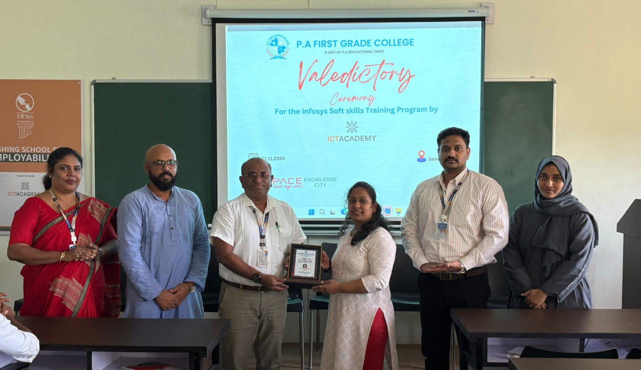 Mangalore, 22 November 2024: the Internal Quality Assurance Cell (IQAC), in association with ICT Academy, organized a valedictory ceremony to conclude a 3-day training session on the Infosys Soft Skills Training Program, part of a CSR initiative by the Infosys Foundation.
