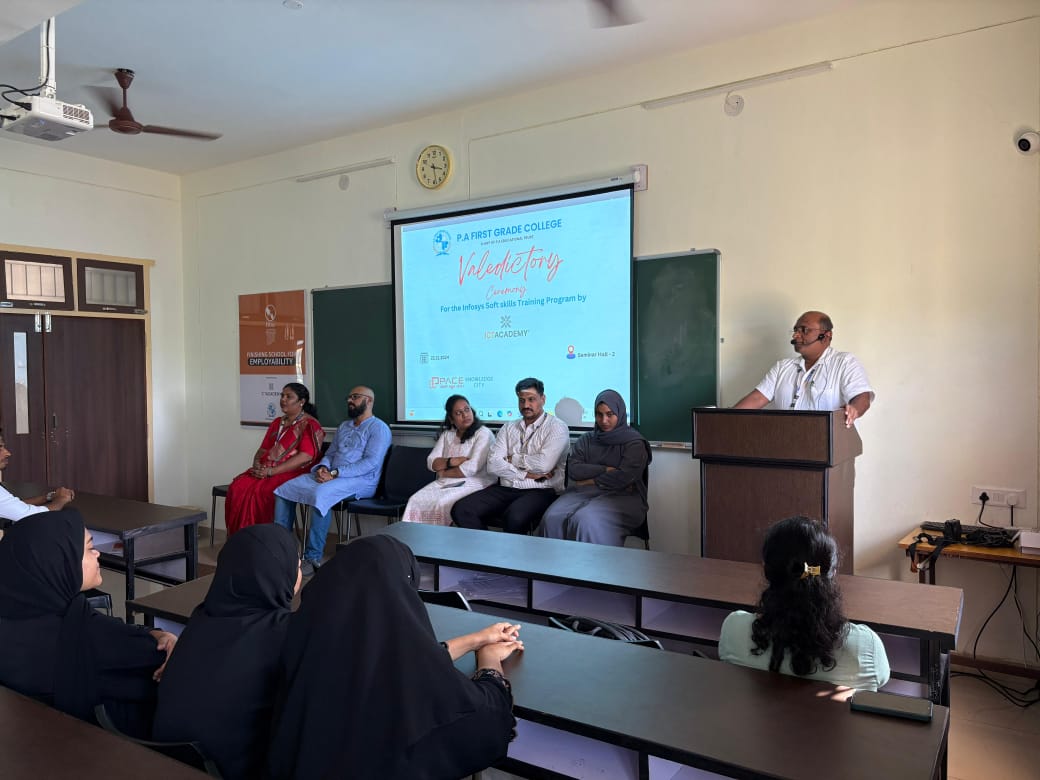 Mangalore, 22 November 2024: the Internal Quality Assurance Cell (IQAC), in association with ICT Academy, organized a valedictory ceremony to conclude a 3-day training session on the Infosys Soft Skills Training Program, part of a CSR initiative by the Infosys Foundation.