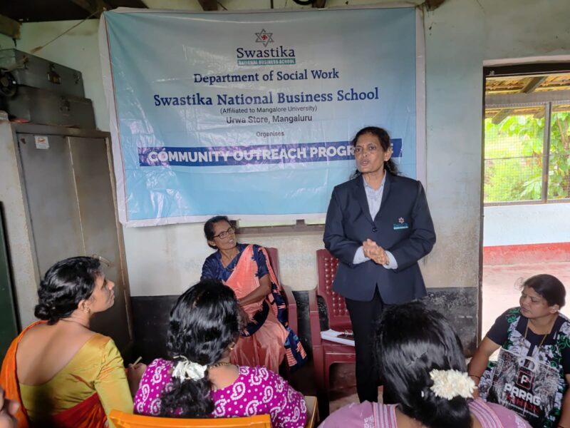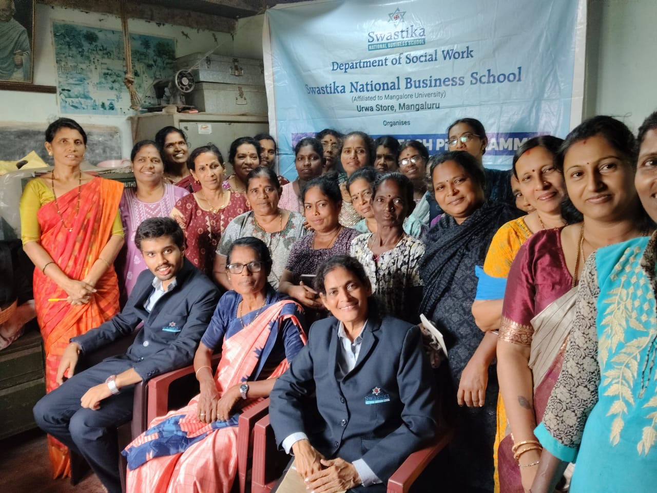 Mrs. Poornima Naveen, a student of Swastika National Business School, served as the guest speaker for the event and delivered an insightful session on “Cyber Shield” — creating awareness about cybercrime, online safety, and preventive measures to protect individuals from digital threats. She emphasized the importance of vigilance while using social media, digital payment platforms, and communication apps.