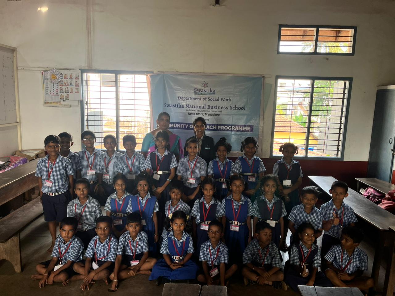 Mangaluru, 13 November 2025: Swastika National Business School (SNBS), Mangaluru, in association with DKZP Higher Primary School, Kulai Fisheries, successfully organized a Community Outreach Programme titled “Manners Matter. aimed at inculcating essential soft skills and etiquette. The program took place at the premises of DKZP Higher Primary School, Kulai Fisheries, bringing practical learning directly to the community.