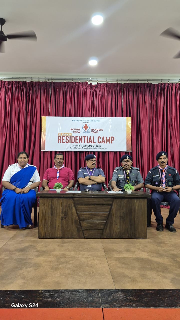 Mangaluru, 7 September 2025: The Bharat Scouts and Guides, Karnataka – Rovers Crew and Rangers Team of Swastika National Business School, Mangaluru, successfully organized a two-day residential camp on September 6 and 7, 2025, at Swastika WaterFront, Sulthan Bathery, Mangaluru.