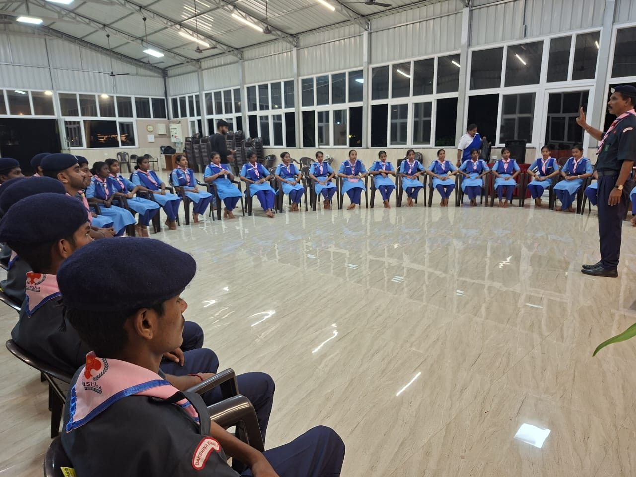 Mr. Bharathraj K, Assistant State Organising Commissioner, Bharat Scouts and Guides, Dakshina Kannada District, graced the event as the Guest of Honor. He appreciated the initiative of Swastika National Business School in nurturing responsible citizens through such camps.
