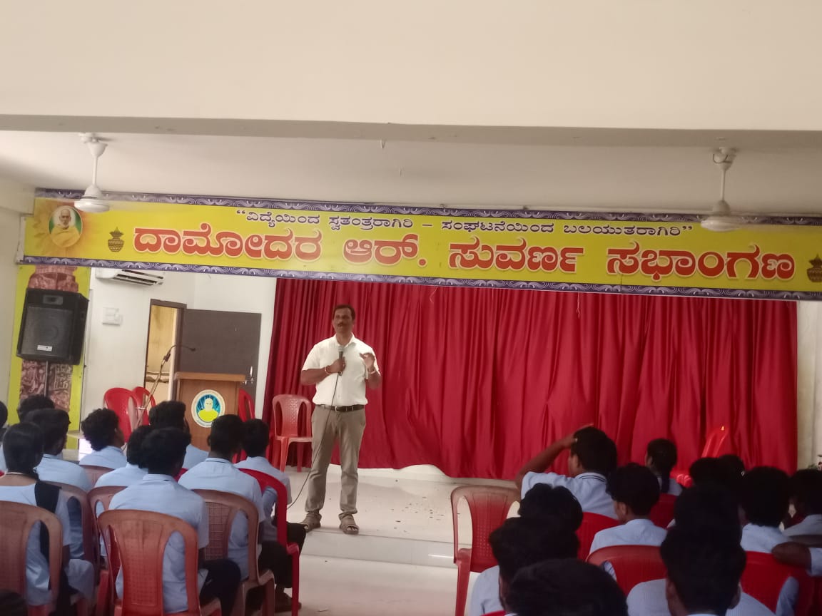 The session was conducted by Dr. Raghavendra Holla N, Author and National Trainer, JCI India, and Chairman of Swastika National Business School. Dr. Holla delivered an inspiring and interactive session on the essence of leadership, emphasizing self-awareness, goal setting, communication excellence, and team synergy. Through real-life examples and engaging activities, he encouraged students to unlock their inner potential and take initiative with confidence and responsibility.