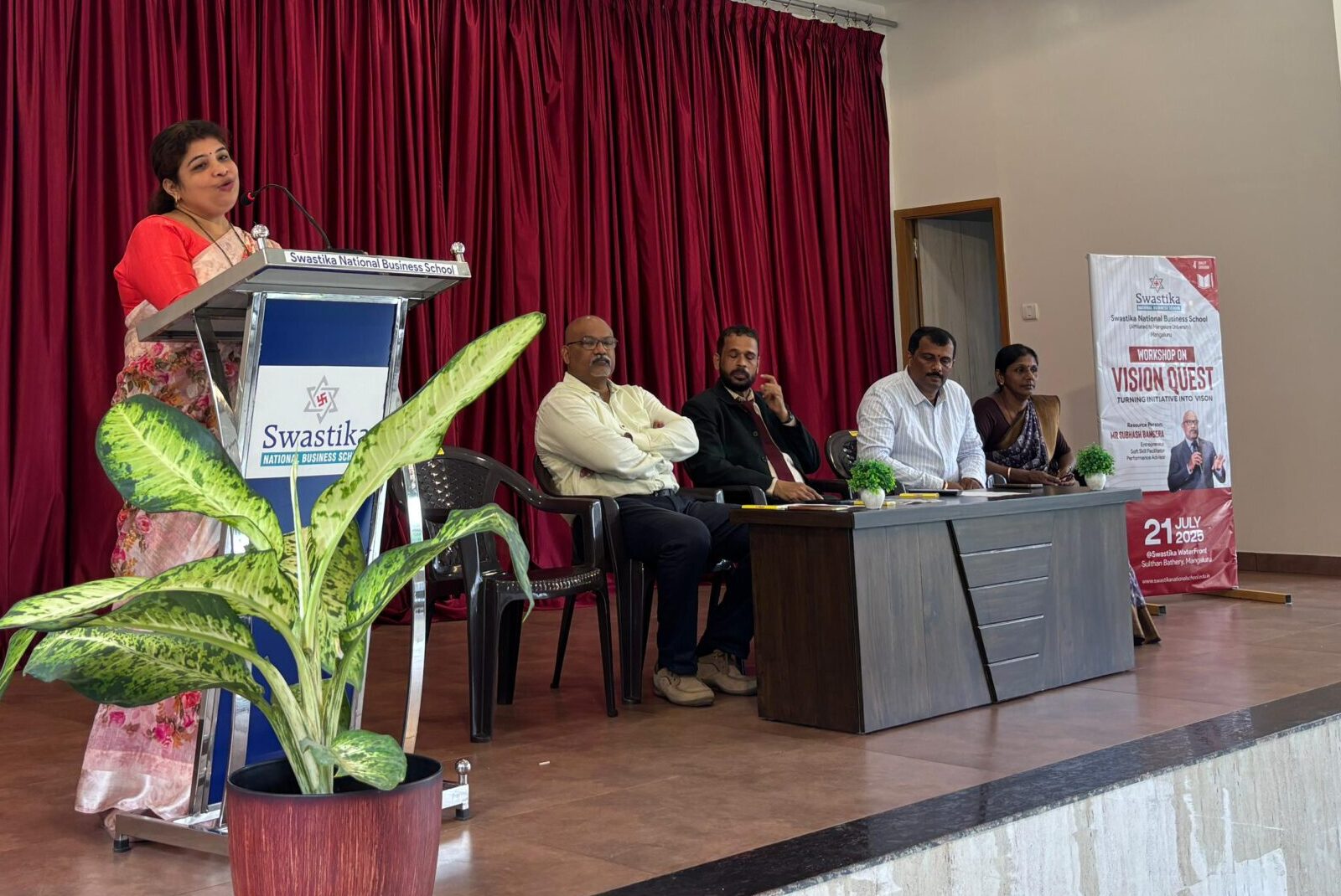 Mangaluru, 21 July 2025: Swastika National Business School, Mangaluru, marked the beginning of an exciting academic journey with an inspiring and energizing workshop titled “Vision Quest: Turning Initiative into Vision”, held on July 21, 2025, at Swastika Waterfront, Mangaluru.