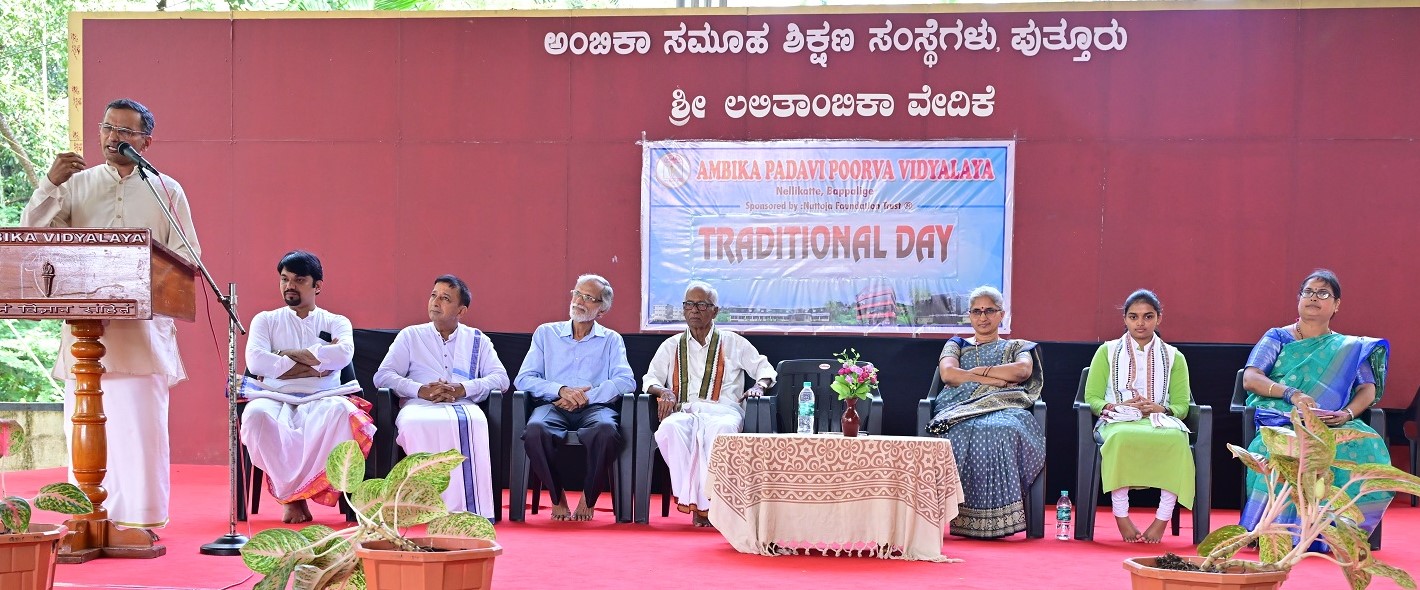 ಪ್ರತಿಯೊಬ್ಬನೂ ತನ್ನಲ್ಲಿ ಮೂರು ಬಗೆಗಿನ ಬಲಗಳನ್ನು ಹೆಚ್ಚಿಸುವಲ್ಲಿ ಪ್ರಯತ್ನಿಸುತ್ತಿರಬೇಕು. ಆ ಮೂರು ಬಲಗಳೆಂದರೆ ದೇಹಬಲ, ಆತ್ಮಬಲ ಹಾಗೂ ಮನೋಬಲ. ನಮ್ಮ ದೇಹವನ್ನು ದಂಡಿಸಿದಷ್ಟೂ ದೇಹ ಚುರುಕಾಗಿ ಕಾರ್ಯನಿರ್ವಹಿಸುತ್ತದೆ. ಯಾವುದನ್ನಾದರೂ ಗೆದ್ದೇನು ಎನ್ನುವ ಆತ್ಮಬಲ ಹಾಗೂ ಯಾವುದನ್ನಾದರೂ ನಿಗ್ರಹಿಸಿಯೇನು ಎನ್ನುವ ಮನೋಬಲ ನಮ್ಮೊಳಗೆ ಅಡಕವಾದಾಗ ಸಾಧನೆ ಸಾಧ್ಯವಾಗುತ್ತದೆ ಎಂದರಲ್ಲದೆ ದೊಡ್ಡದಾದ ಕನಸನ್ನು ಕಂಡು ಅದನ್ನು ನನಸಾಗಿಸುವ ಪ್ರಯತ್ನವನ್ನು ನಿರಂತರವಾಗಿ ಮಾಡುತ್ತಿರಬೇಕು ಎಂದು ಅಭಿಪ್ರಾಯಪಟ್ಟರು. ಅಂಬಿಕಾ ಸಮೂಹ ಶಿಕ್ಷಣ ಸಂಸ್ಥೆಗಳ ಕಾರ್ಯದರ್ಶಿ ರಾಜಶ್ರೀ ನಟ್ಟೋಜ ಮಾತನಾಡಿ ಪಾರಂಪರಿಕ ದಿನಾಚರಣೆಯ ನೆಲೆಯಲ್ಲಿ ಪರಂಪರೆಯಿಂದ ಸಾಗಿಬಂದ ವಸ್ತ್ರ ಧರಿಸುವುದರೊಂದಿಗೆ ಅದರ ಹಿನ್ನೆಲೆ, ಅದಕ್ಕಿರುವ ಪಾವಿತ್ರ್ಯತೆಗಳನ್ನು ಅರ್ಥ ಮಾಡಿಕೊಳ್ಳಬೇಕು. ಹಣೆಗೆ ಕುಂಕುಮ ಧರಿಸುವುದರ ಹಿಂದೆ ಆಧ್ಯಾತ್ಮಿಕವಾದ ಕಾರಣಗಳಿವೆ. ಹಣೆಗೆ ಹಚ್ಚುವ ಕುಂಕುಮ, ಗಂಧವೇ ಮೊದಲಾದವುಗಳು ನಮ್ಮನ್ನು ಜಾಗೃತಾವಸ್ಥೆಯಲ್ಲಿಡುವಂತೆ ಮಾಡುವ ಚೈತನ್ಯವನ್ನು ಪ್ರೇರೇಪಿಸುತ್ತವೆ ಎಂದರು.