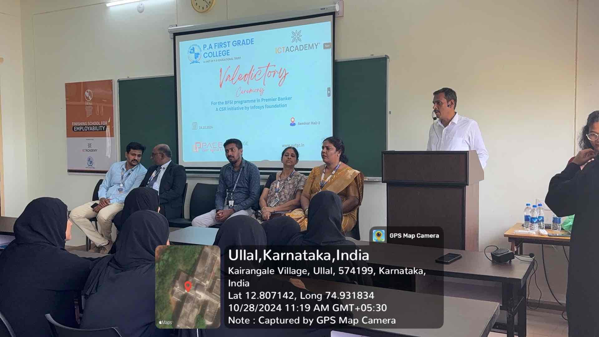 Mangalore, 28 October 2024: The Internal Quality Assurance Cell (IQAC), in association with ICT Academy, organized a valedictory ceremony concluding a 14-day training session on the BFSI program in Premier Banking, as part of a CSR initiative by the Infosys Foundation.