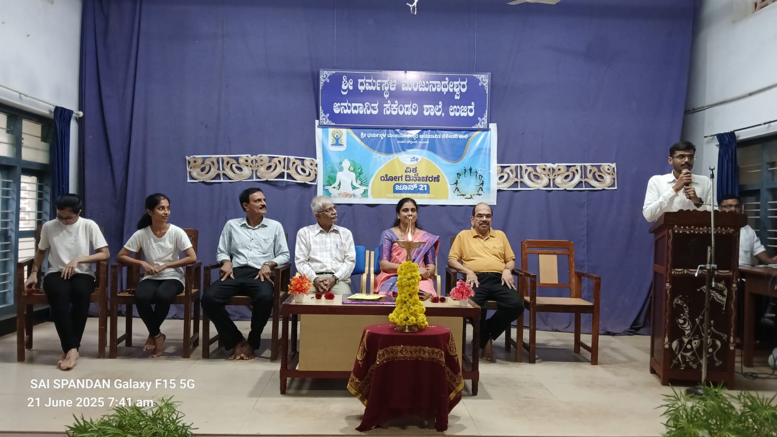ಉಜಿರೆ, 21 ಜೂನ್ 2025: ಶ್ರೀ ಧ.ಮಂ. ಅನುದಾನಿತ ಸೆಕೆಂಡರಿ ಶಾಲೆಯಲ್ಲಿ 11 ನೇ ಅಂತರರಾಷ್ಟ್ರೀಯ ಯೋಗ ದಿನಾಚರಣೆಯನ್ನು ಭಾರತೀಯ ಡೆಂಟಲ್ ಅಸೋಸಿಯೇಷನ್ ನ ಪುತ್ತೂರು ಶಾಖೆಯ ಅಧ್ಯಕ್ಷೆ ಡಾ| ಆಶಾ ರಾಘವೇಂದ್ರ ಪಿದಮಲೆ ಅವರು ಉದ್ಘಾಟಿಸಿದರು.