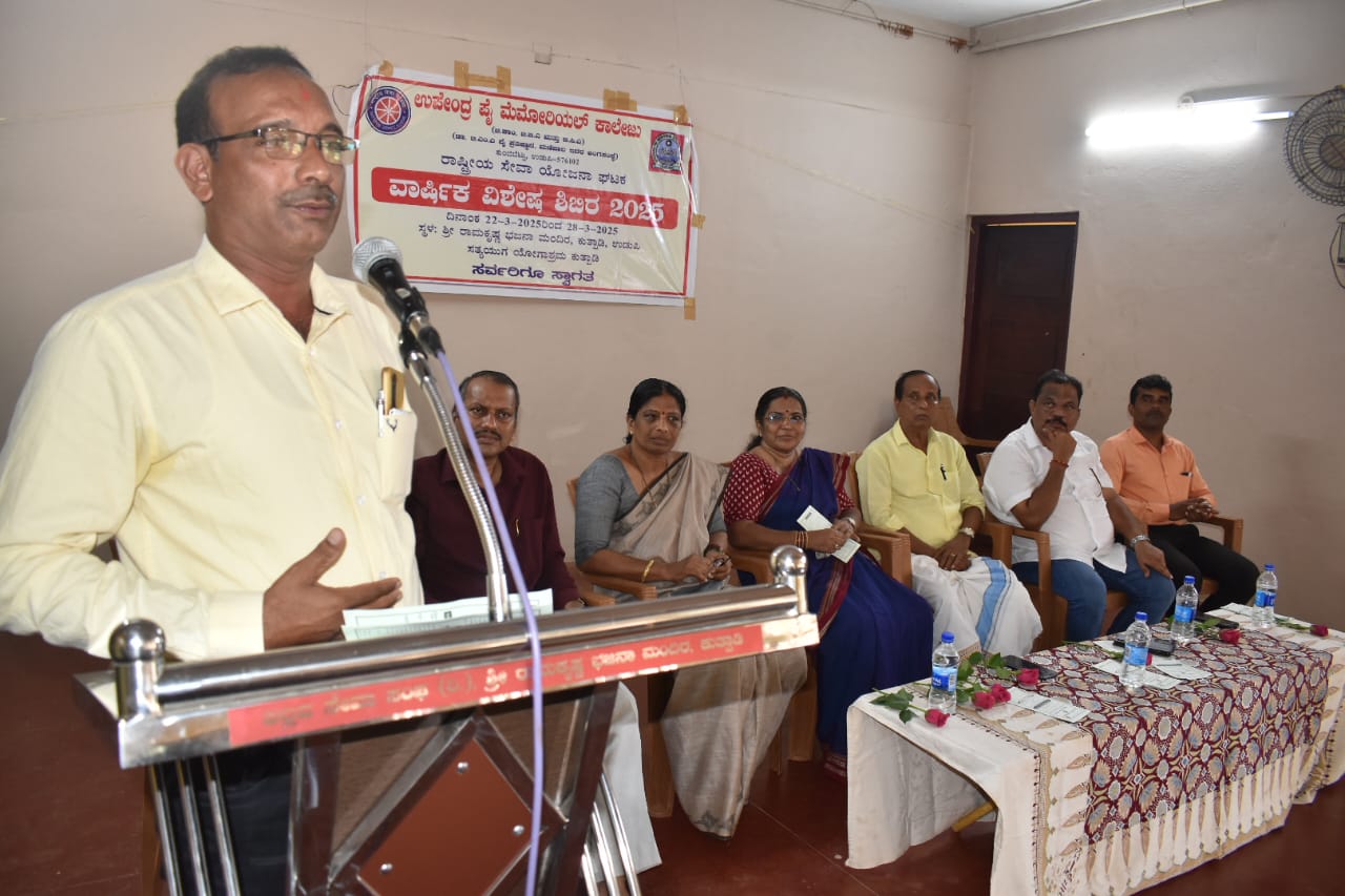 ಅವರು ಕುತ್ಪಾಡಿ ಶ್ರೀ ರಾಮಕೃಷ್ಣ ಭಜನಾ ಮಂದಿರ ಹಾಗು ಸತ್ಯಯುಗ ಯೋಗಾಶ್ರಮ ಇಲ್ಲಿ ನಡೆದ ಕುಂಜಿಬೆಟ್ಟು ಉಪೇಂದ್ರ ಪೈ ಮೆಮೋರಿಯಲ್ ಕಾಲೇಜಿನ ರಾಷ್ಟ್ರೀಯ ಸೇವಾ ಯೋಜನೆಯ ವಾರ್ಷಿಕ ವಿಶೇಷ ಶಿಬಿರದ ಸಮಾರೋಪ ಸಮಾರಂಭದಲ್ಲಿ ಮಾತನಾಡುತ್ತಿದ್ದರು.