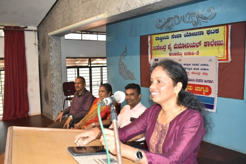 ಕುಂಜಿಬೆಟ್ಟು,19 ನವೆಂಬರ್ 2025: ಉಪೇಂದ್ರ ಪೈ ಮೆಮೋರಿಯಲ್ ಕಾಲೇಜಿನ ರಾಷ್ಟ್ರೀಯ ಸೇವಾ ಯೋಜನಾ ಘಟಕದ ವತಿಯಿಂದ, ಜಿಲ್ಲಾ ಆರೋಗ್ಯ ಮತ್ತು ಕುಟುಂಬ ಕಲ್ಯಾಣ ಇಲಾಖೆ ಉಡುಪಿ, ಜಿಲ್ಲಾ ಏಡ್ಸ್ ನಿಯಂತ್ರಣ ಮತ್ತು ತಡೆಗಟ್ಟುವ ಘಟಕ, ಉಡುಪಿ ಹಾಗೂ ಐಸಿಟಿಸಿ ಸಮುದಾಯ ಆರೋಗ್ಯ ಕೇಂದ್ರ ಹೆಬ್ರಿ ಯ ಸಂಯುಕ್ತಾಶ್ರಯದಲ್ಲಿ ಹೆಚ್ ಐ ವಿ / ಏಡ್ಸ್ ತಡೆಗಾಗಿ ತೀವ್ರಗೊಳಿಸಿದ ಪ್ರಚಾರಾಂದೋಲನ – 2025ರ ಅಂಗವಾಗಿ ಹೆಚ್ ಐ ವಿ ಮತ್ತು ಏಡ್ಸ್ ಕುರಿತು ಜಾಗೃತಿ ಕಾರ್ಯಕ್ರಮ ಜರಗಿತು.