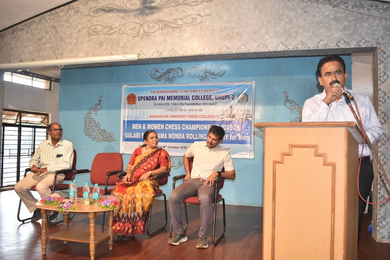 ಕುಂಜಿಬೆಟ್ಟು, 16 ಅಕ್ಟೋಬರ್ 2025: ಉಪೇಂದ್ರ ಪೈ ಮೆಮೋರಿಯಲ್ ಕಾಲೇಜಿನಲ್ಲಿ ಗುಲಾಬಿ ಶಿವರಾಮ ನೋಂಡ ಪರ್ಯಾಯ ಟ್ರೋಫಿಗಾಗಿ ಮಂಗಳೂರು ವಿ ವಿ ಅಂತರ್ಕಾಲೇಜು ಪುರುಷರ ಮತ್ತು ಮಹಿಳೆಯರ ಚೆಸ್ ಪಂದ್ಯಾಟಕ್ಕೆ ಚಾಲನೆ ನೀಡಲಾಯಿತು.